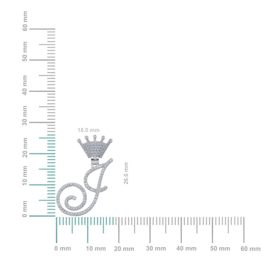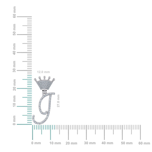 10K White Gold Round Diamond Crown J Letter Initial Pendant 1/5 Ctw