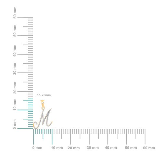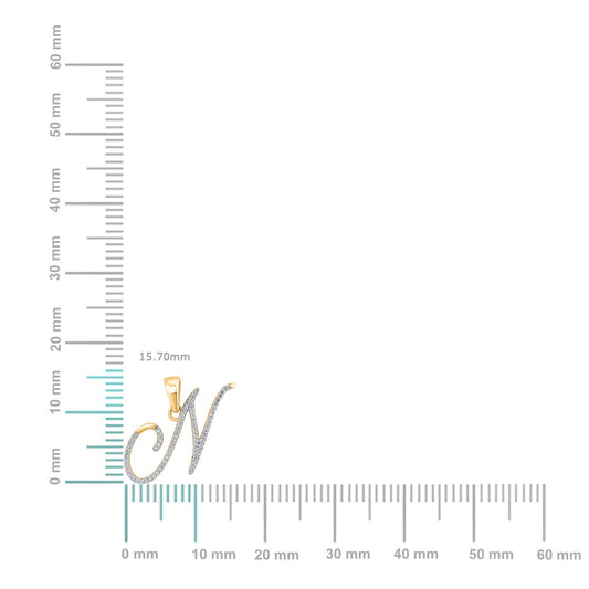 10K Yellow Gold Round Diamond M Letter Initial Pendant 1/8 Ctw