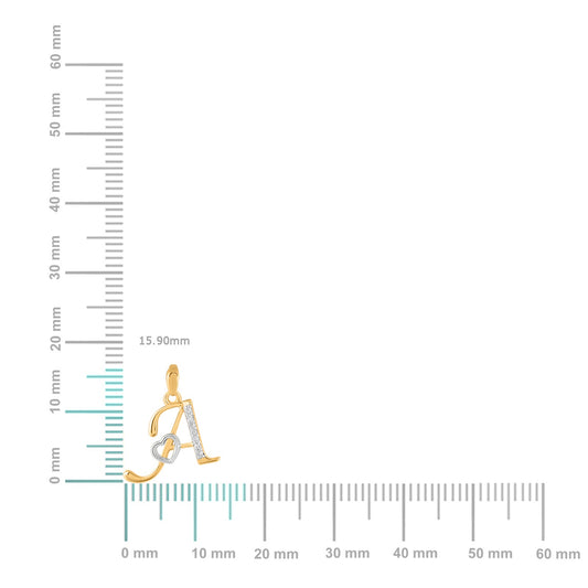 10K Yellow Gold Round Diamond A Letter Initial With Heart Pendant 1/10 Ctw