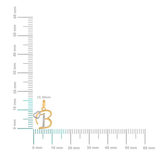 10K Yellow Gold Round Diamond B Letter Initial With Heart Pendant 1/10 Ctw