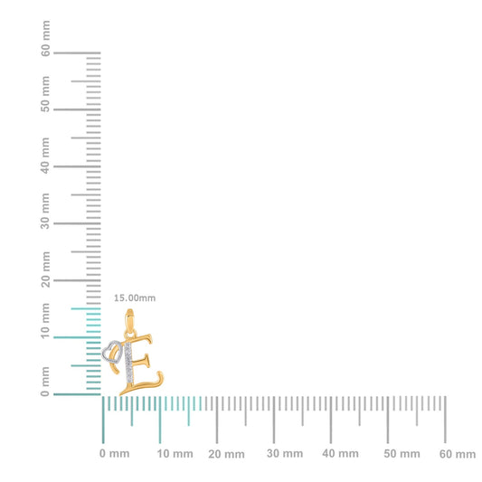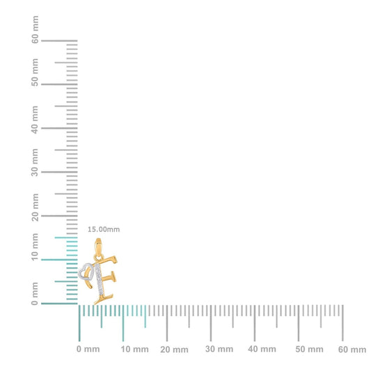 10K Yellow Gold Round Diamond E Letter Initial With Heart Pendant 1/10 Ctw