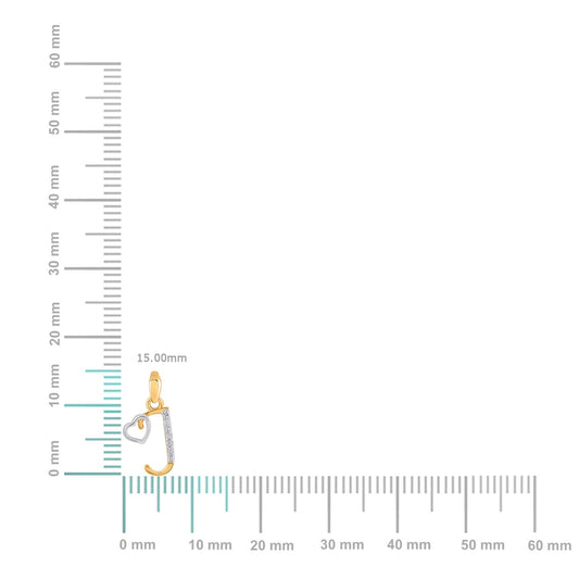 10K Yellow Gold Round Diamond J Letter Initial With Heart Pendant 1/10 Ctw