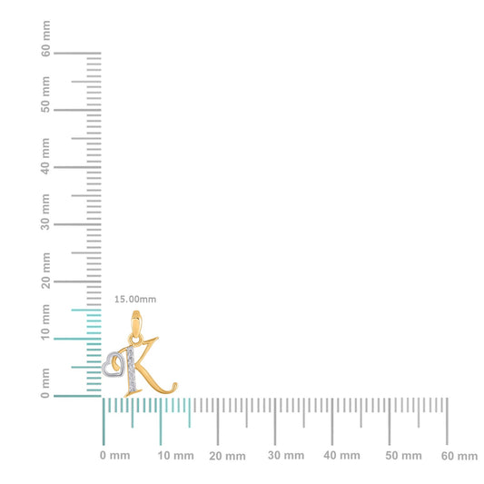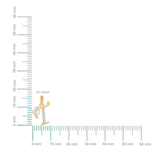 10K Yellow Gold Round Diamond K Letter Initial With Heart Pendant 1/10 Ctw