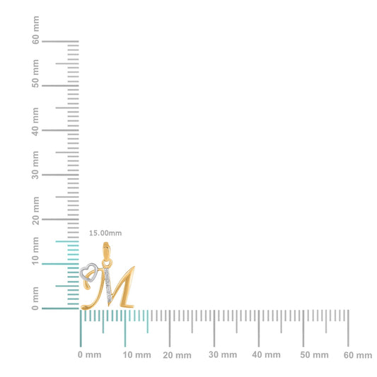 10K Yellow Gold Round Diamond M Letter Initial With Heart Pendant 1/10 Ctw