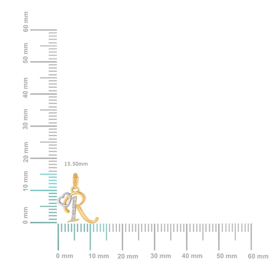 10K Yellow Gold Round Diamond R Letter Initial With Heart Pendant 1/10 Ctw