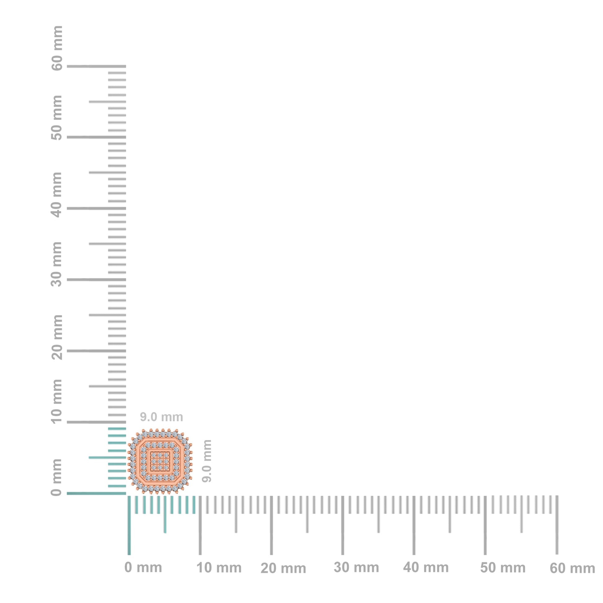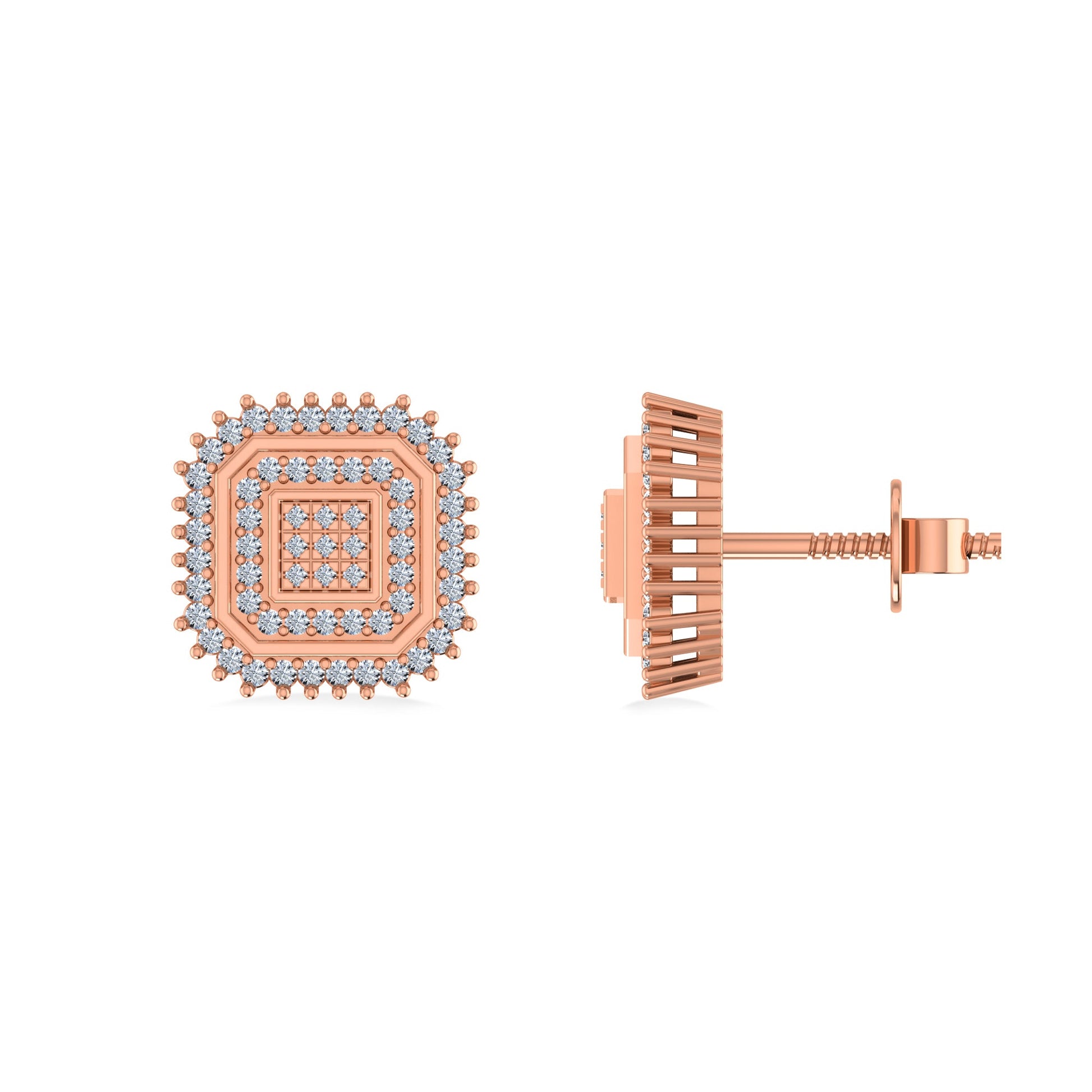 10K Rose Gold Round Diamond Square Shape Designer Mens Stud Earring 1/5 Ctw