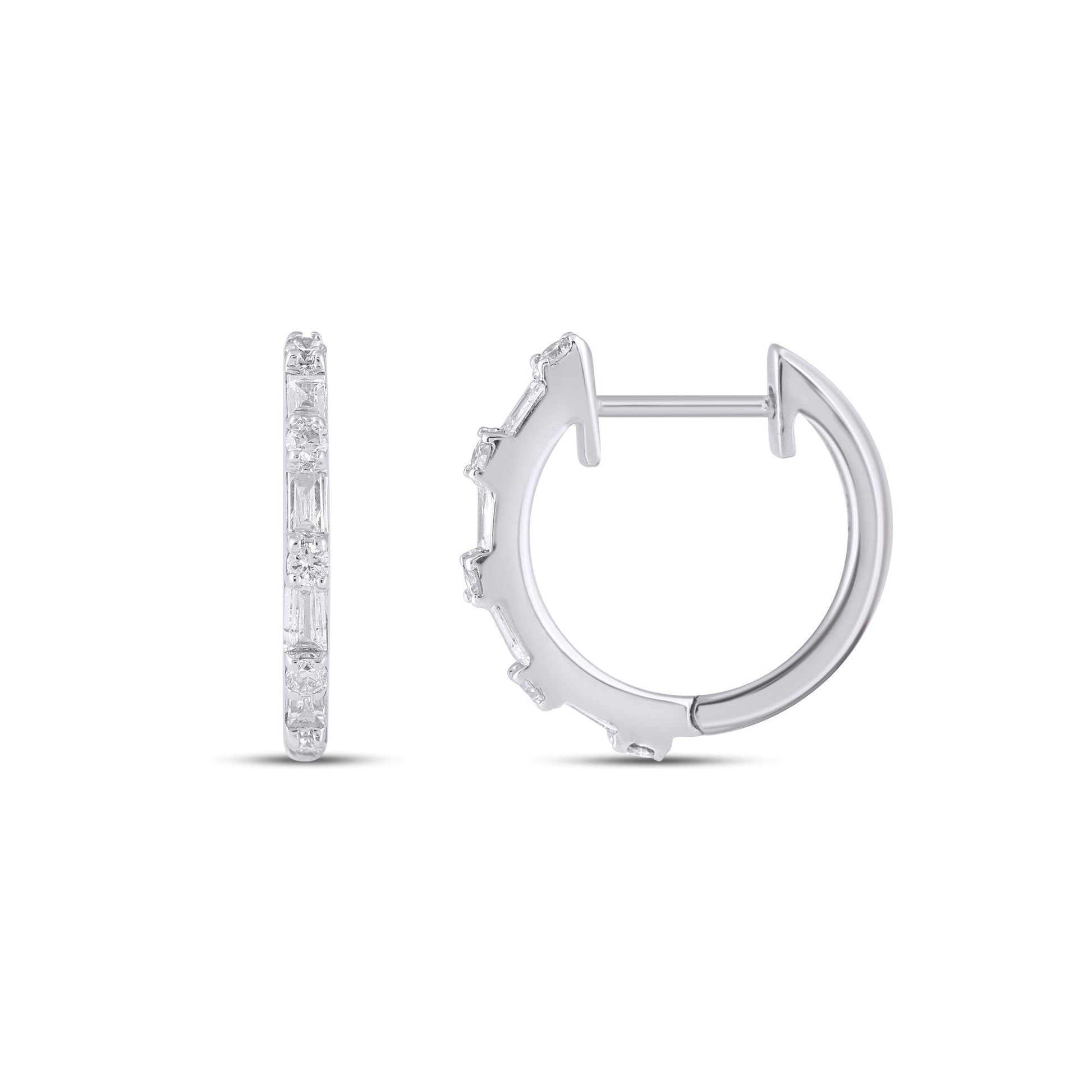 JewelryByBryce Presents: 10K White Gold Round Baguette Diamond Designer Hoop Earring – 1/4 Ctw