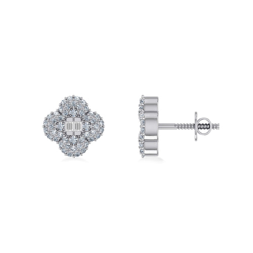 JewelryByBryce Presents: 10K White Gold Round Baguette Diamond Floral Designer Earrings – 1/3 Ctw