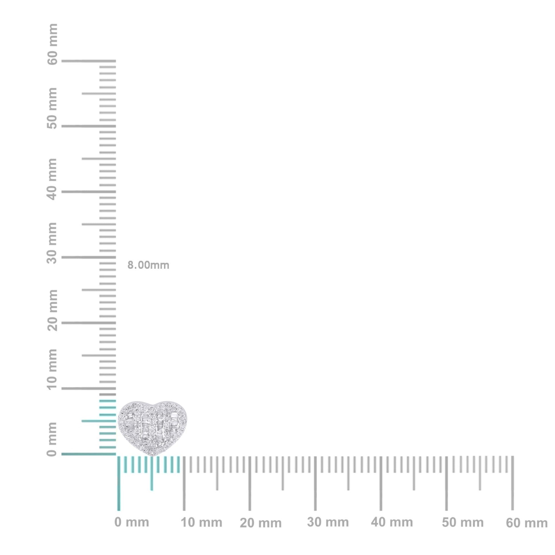 10K White Gold Round Baguette Diamond Heart Earring 1/3 Ctw