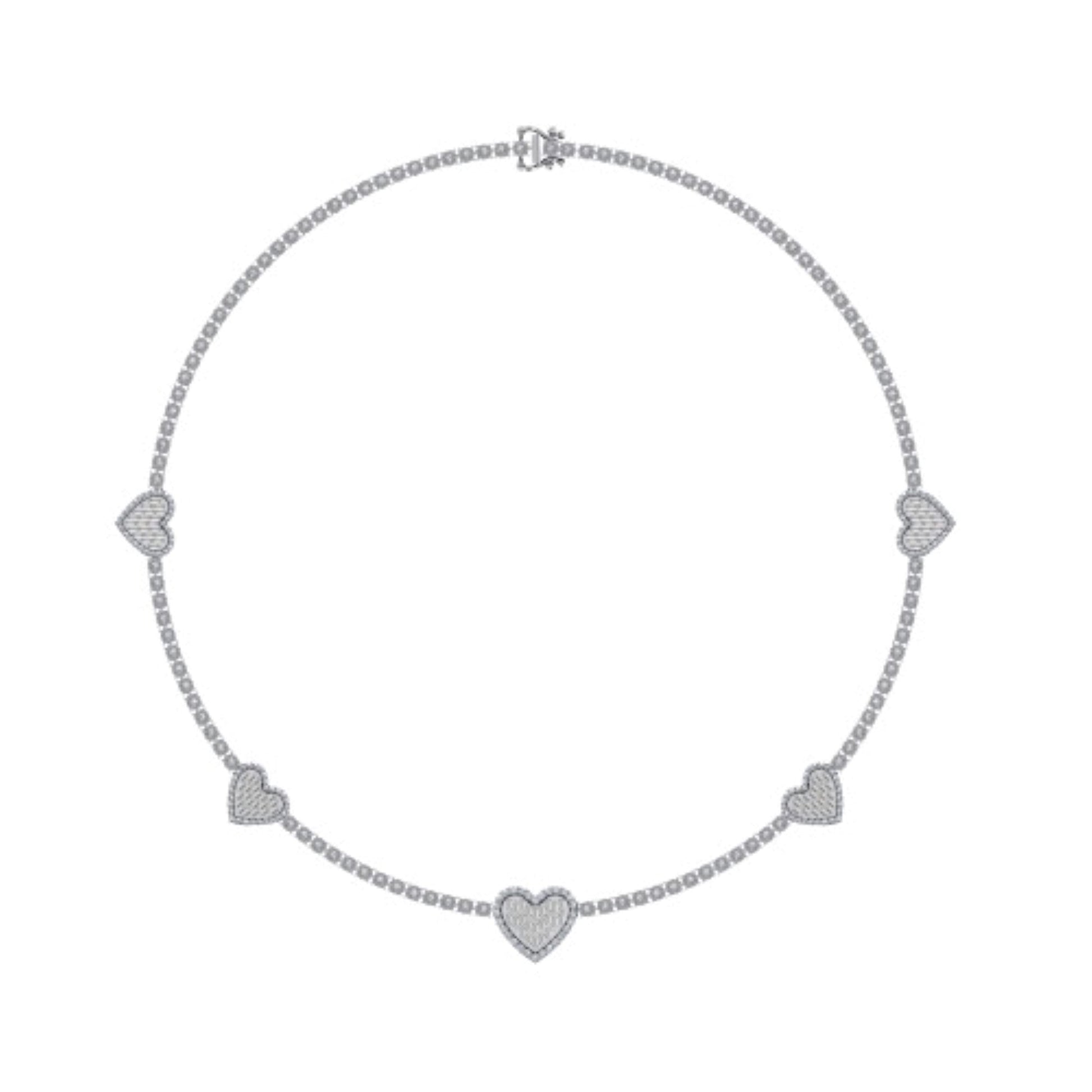 JewelryByBryce Presents: 10K White Gold Round Baguette Diamond Heart Shape 18-Inch Necklace – 4 Ctw