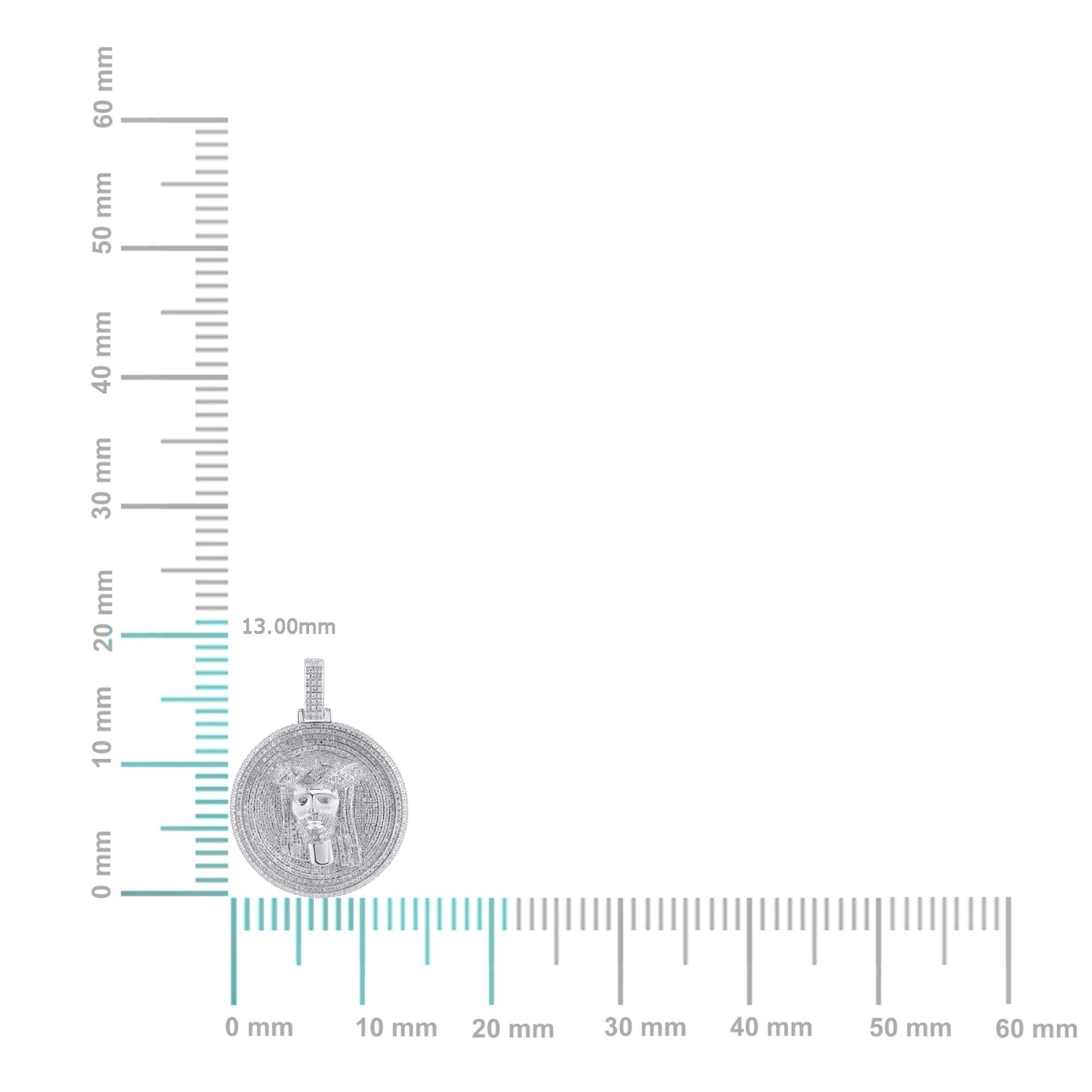 10K White Gold Round Baguette Diamond Jesus Face Religious Pendant 2 Ctw