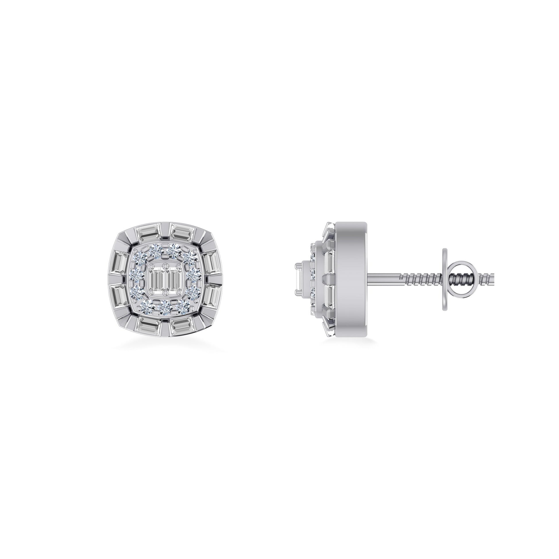 10K White Gold Round Baguette Diamond Square Designer Earring 1/4 Ctw