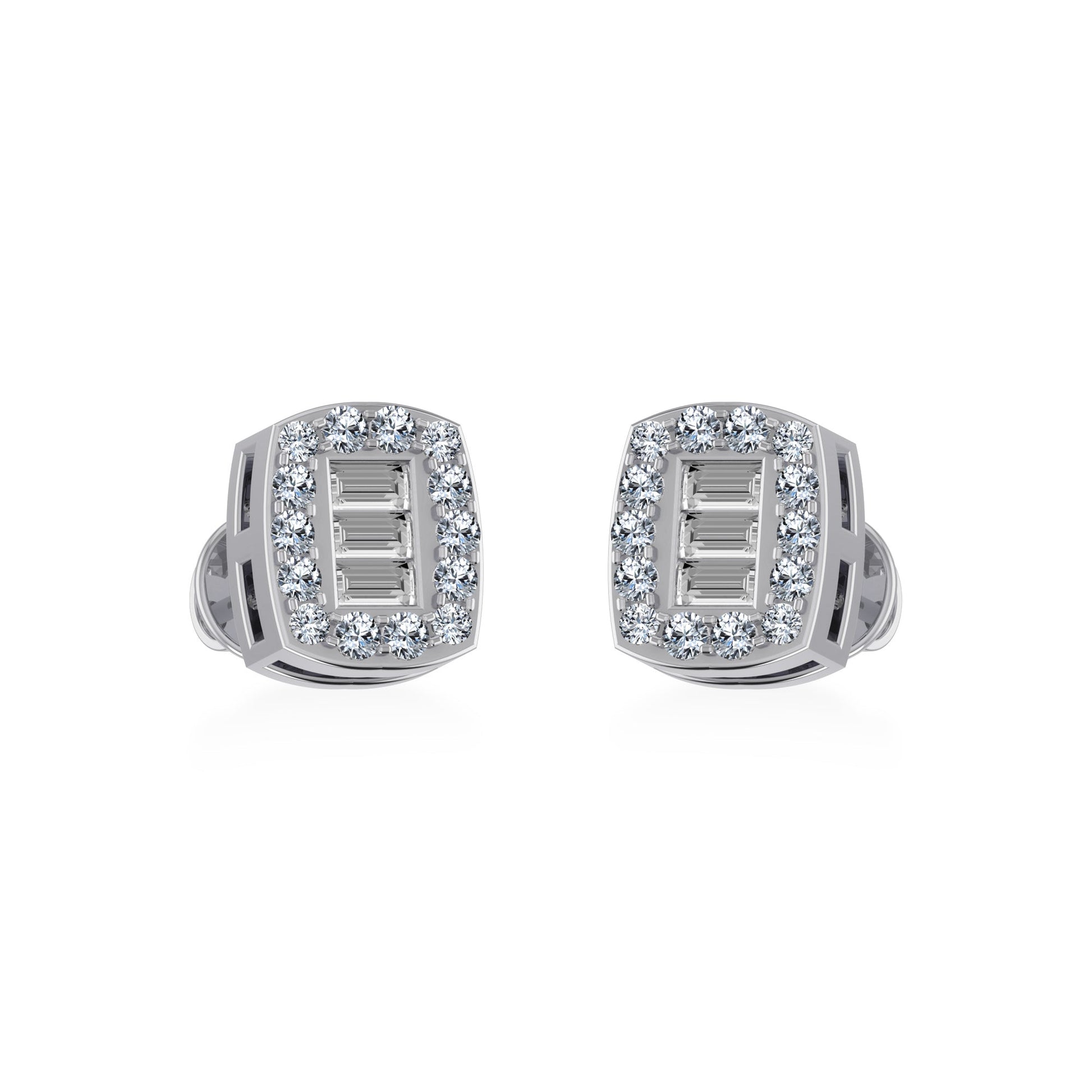 JewelryByBryce: 10K White Gold Round Baguette Diamond Square Shape Stud Earrings – 1/5 Ctw