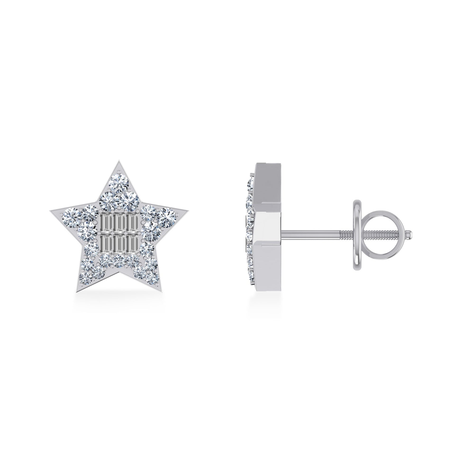 10K White Gold Round Baguette Diamond Star Shape Stud Earrings 1/4 Ctw