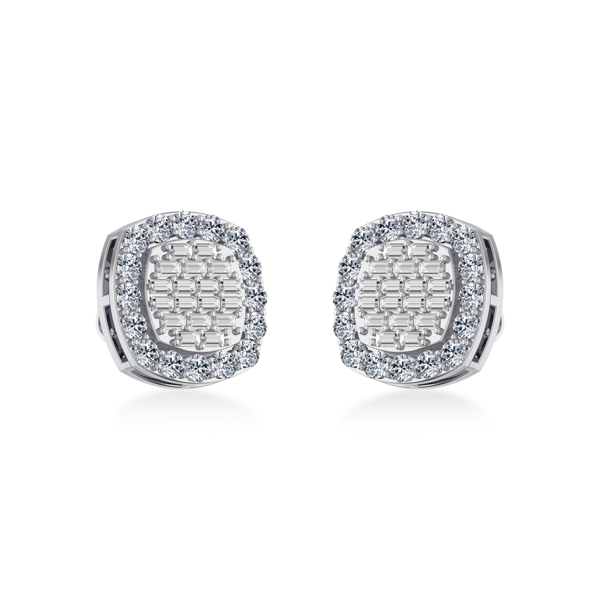 10K White Gold Round Baguette Diamond Stud Earring 1 Ctw