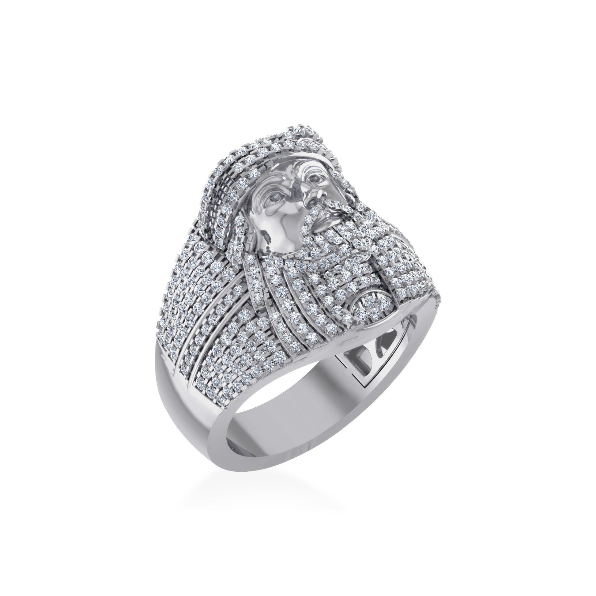 JewelryByBryce Presents: 10K White Gold Round Diamond 3D Jesus Religious Size 10 Men’s Ring – 1-3/4 Ctw