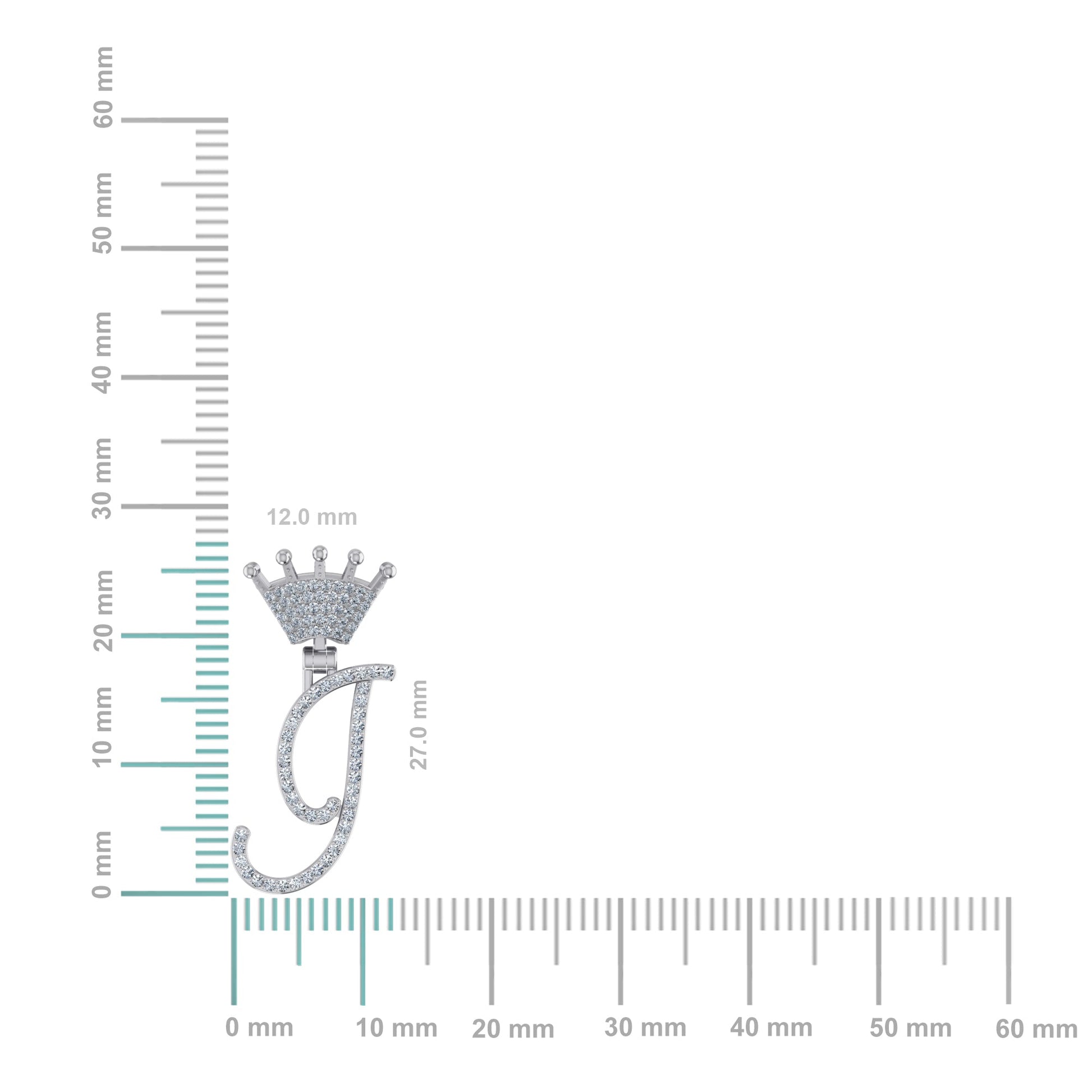 10K White Gold Round Diamond Crown I Letter Initial Pendant 1/6 Ctw