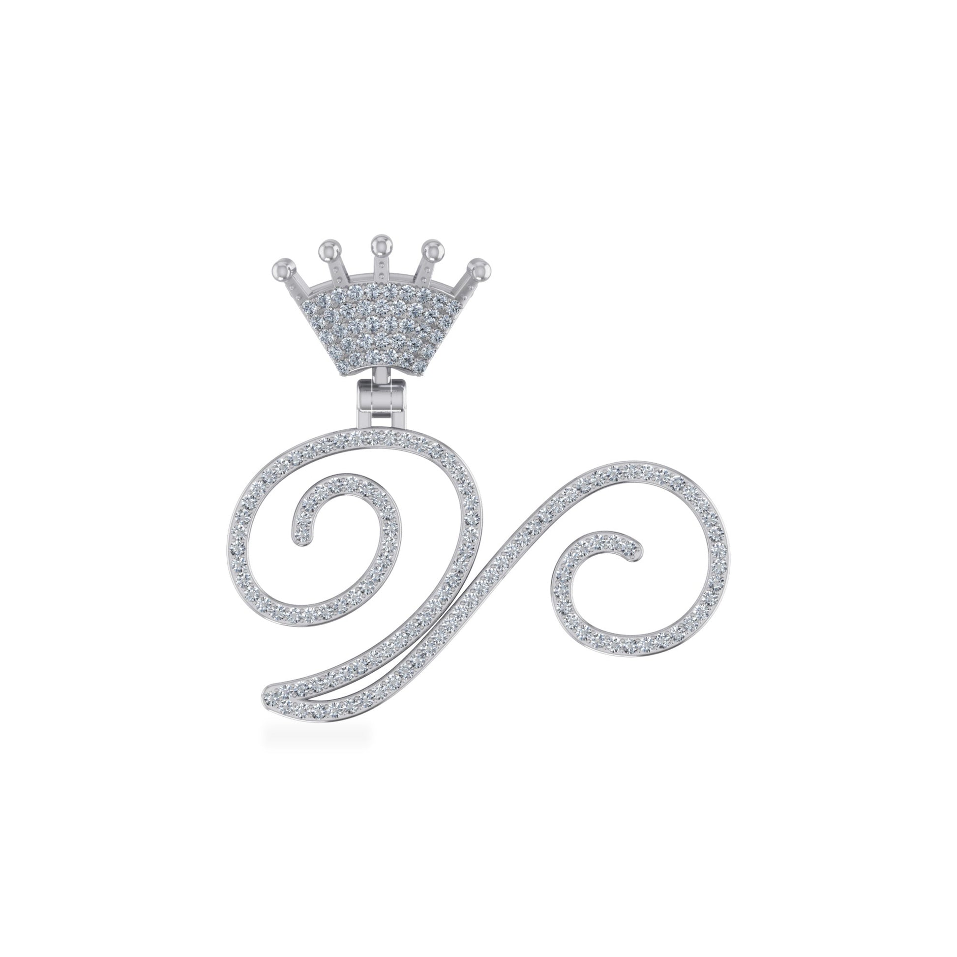 JewelryByBryce: 10K White Gold Round Diamond Crown V Letter Initial Pendant – 1/4 Ctw