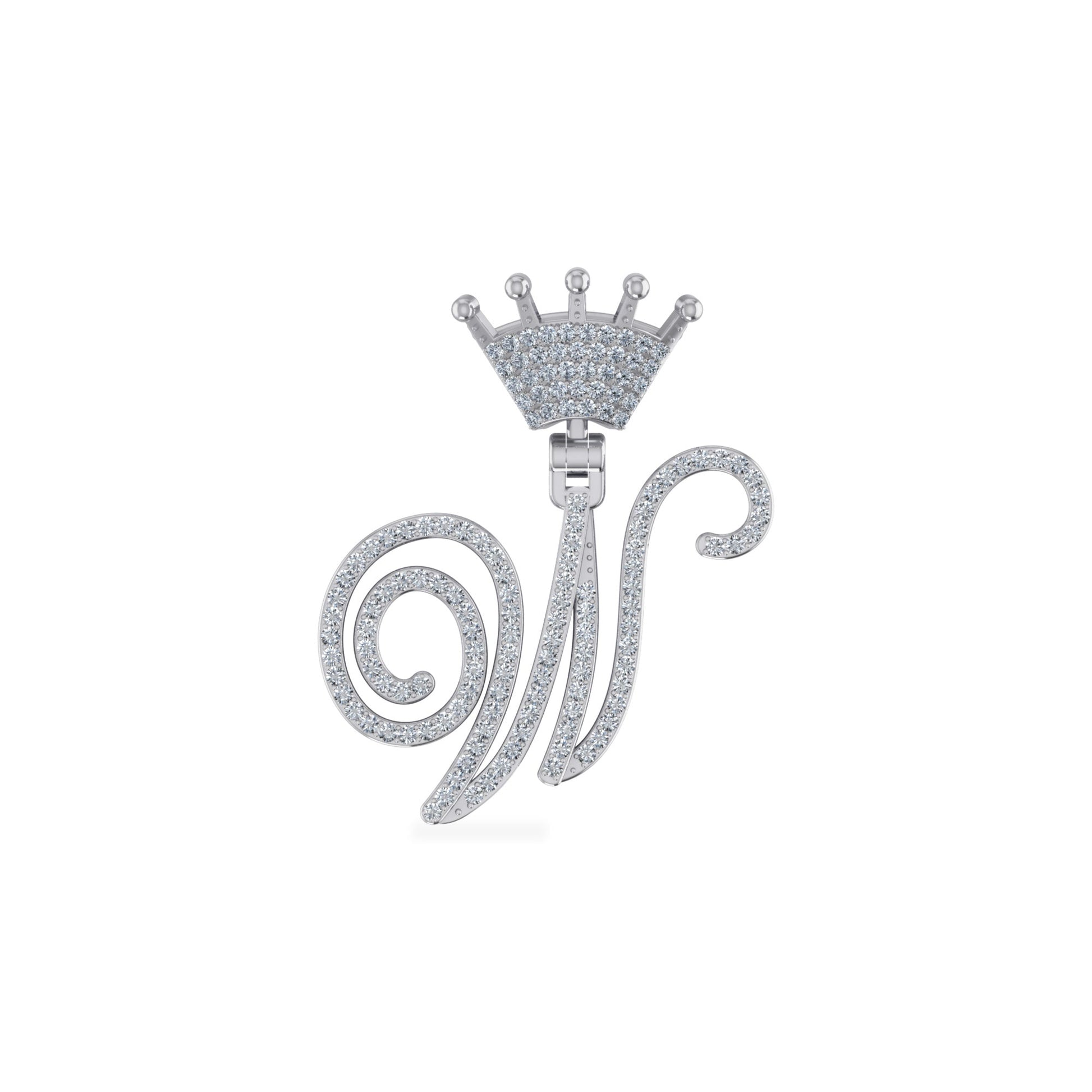 10K White Gold Round Diamond Crown W Letter Initial Pendant 1/4 Ctw