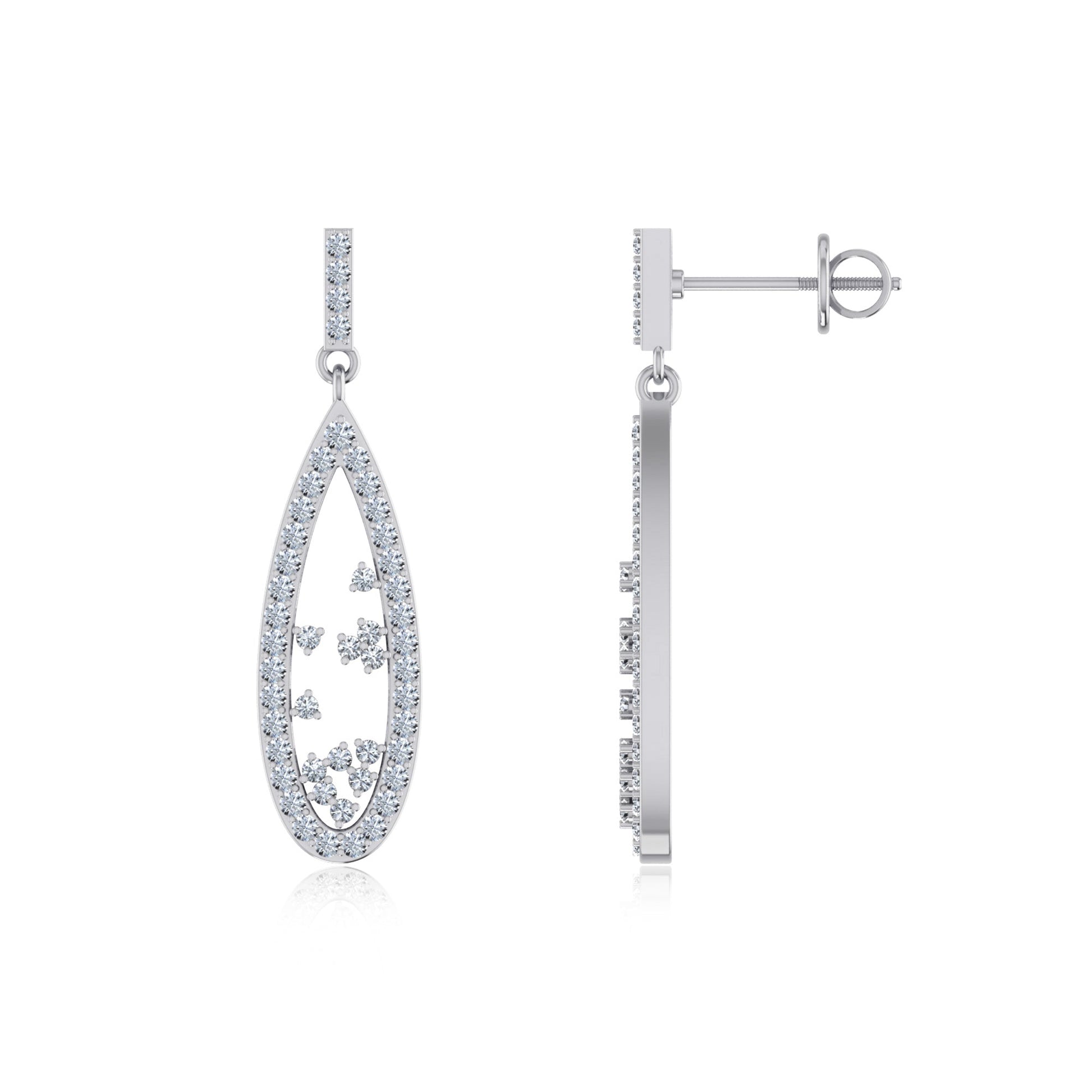 10K White Gold Round Diamond Designer Dangling Earrings 5/8 Ctw
