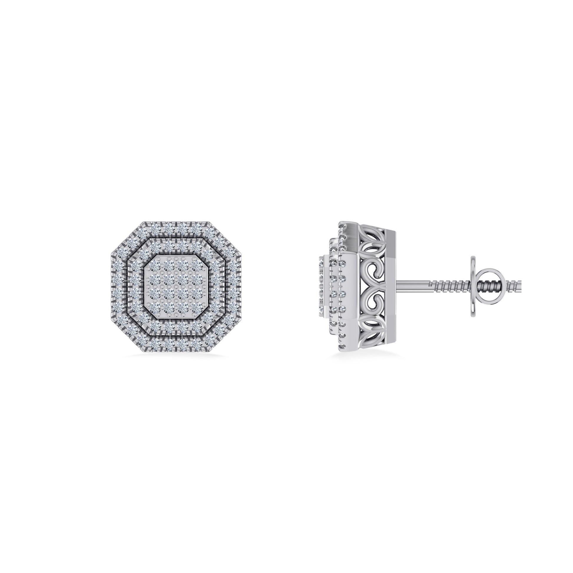 JewelryByBryce Presents: 10K White Gold Round Diamond Designer Halo Men's Stud Earring – 1/5 Ctw
