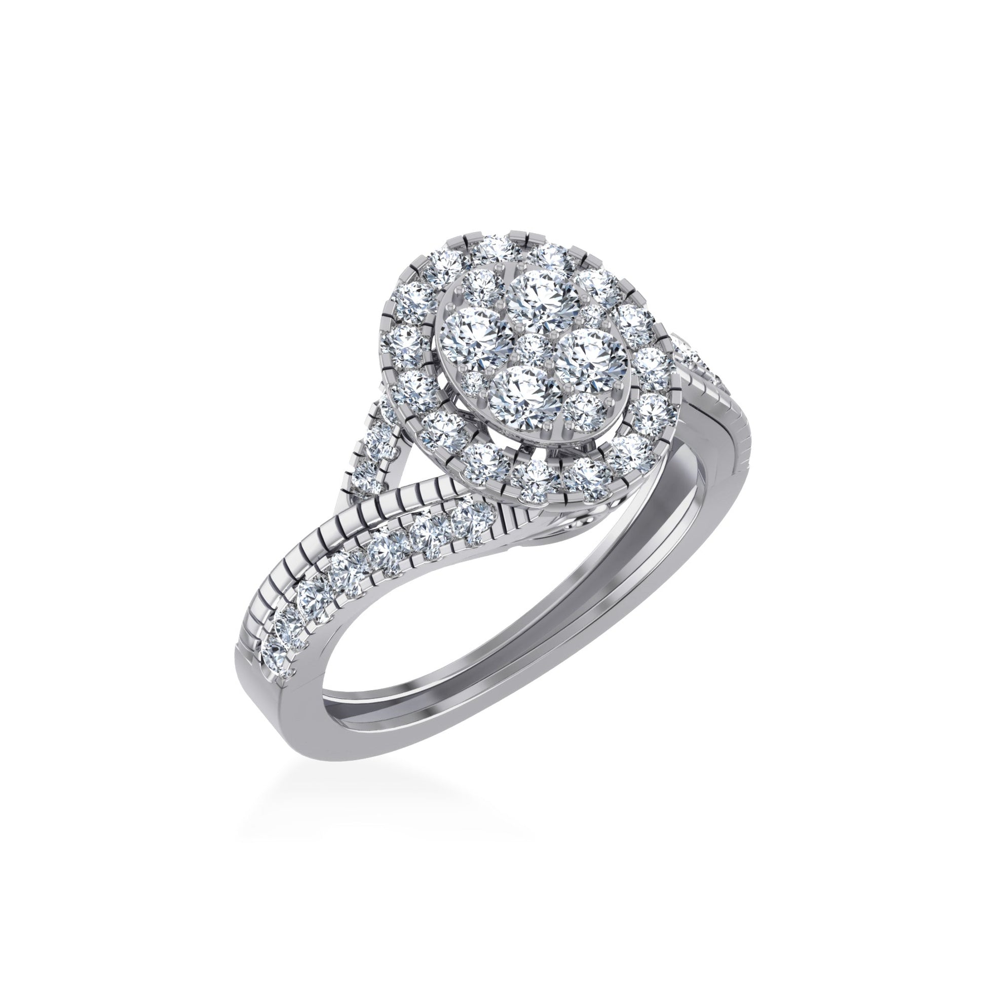 10K White Gold Round Diamond Halo Designer Womens Ring Size 7 1-1/5 Ctw