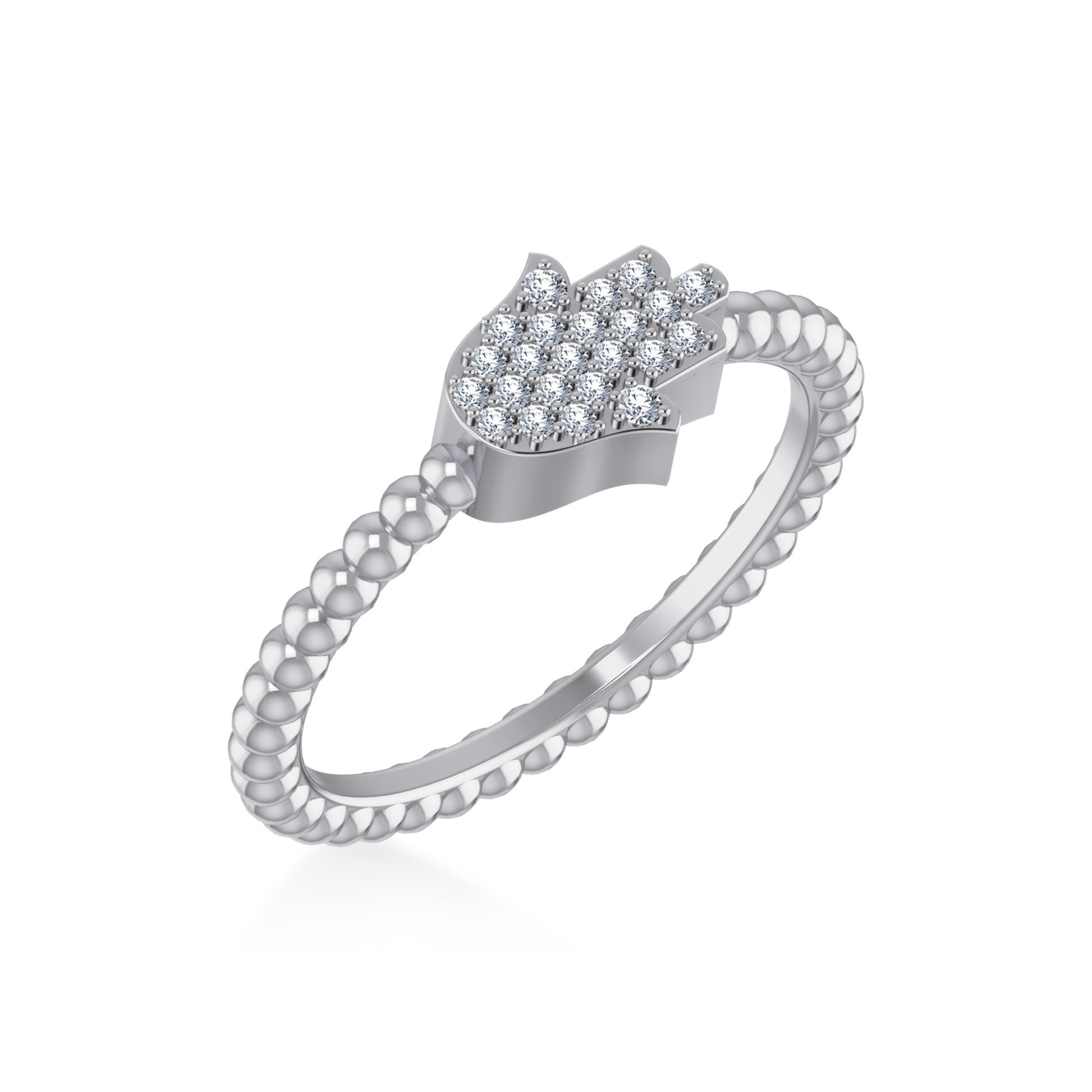 JewelryByBryce Presents: 10K White Gold Round Diamond Hamza Hand Size 7 Designer Ladies Ring – 1/8 Ctw
