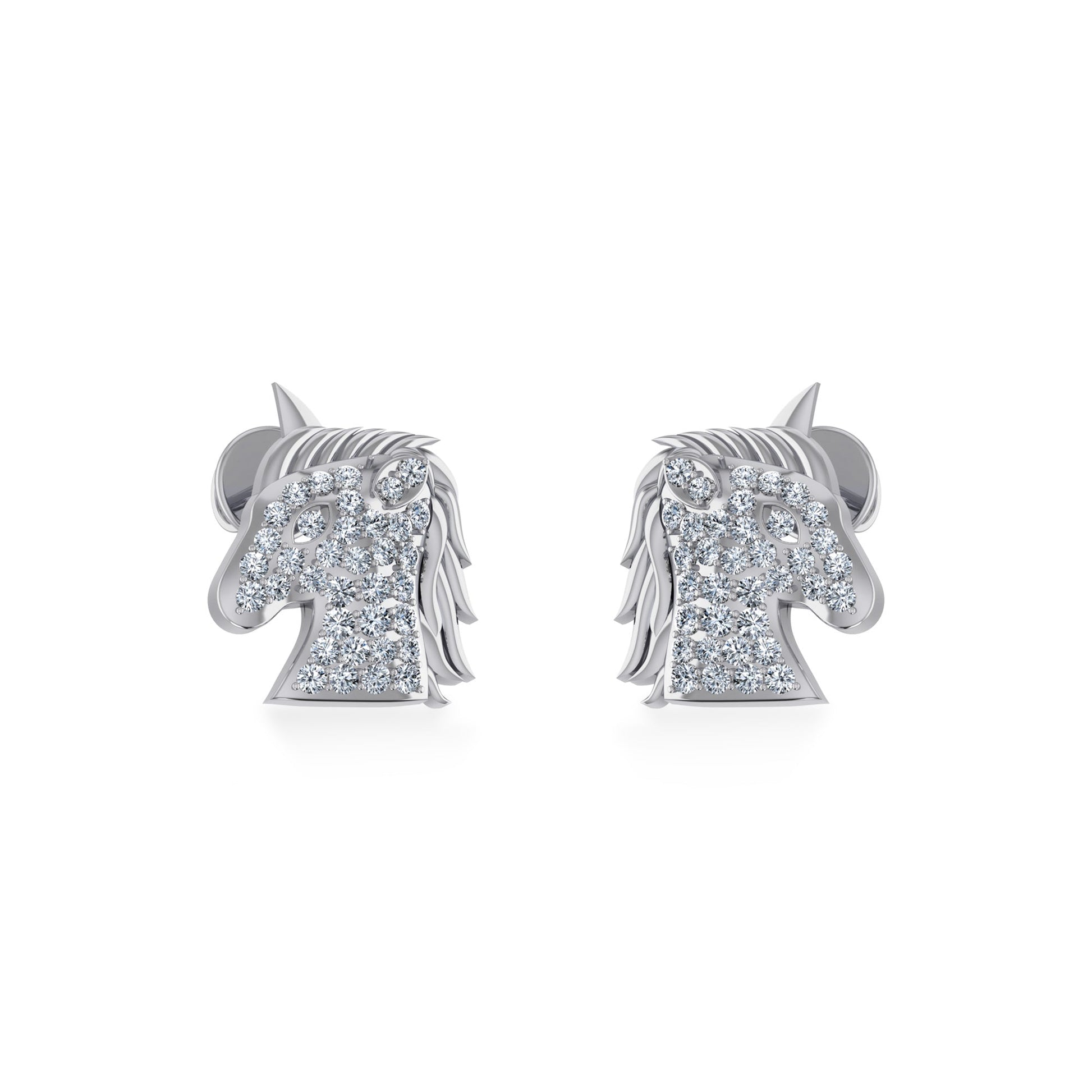 JewelryByBryce: 10K White Gold Round Diamond Horse Animal Designer Stud Earring – 1/5 Ctw