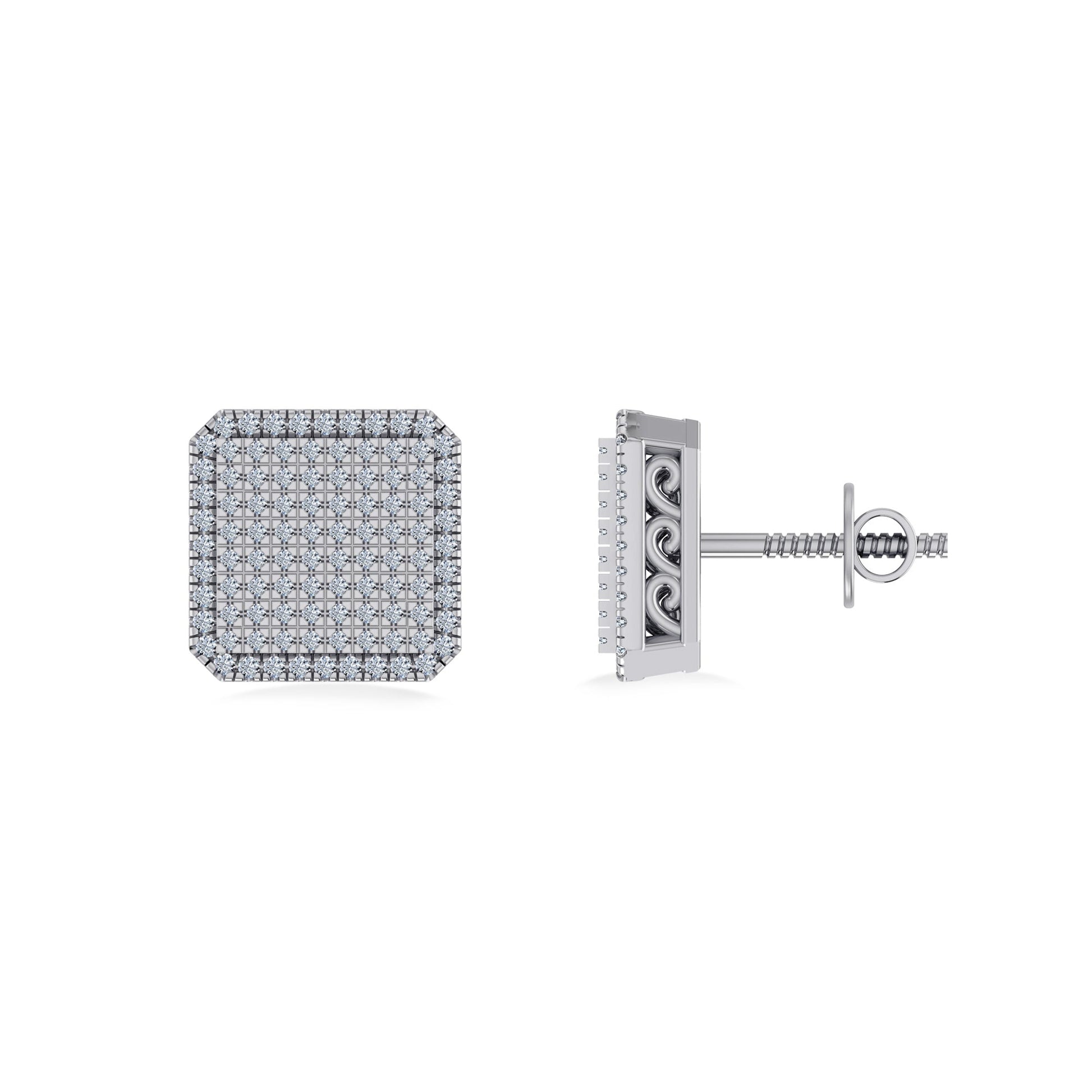 10K White Gold Round Diamond Square Shape Designer Mens Stud Earring 1/3 Ctw