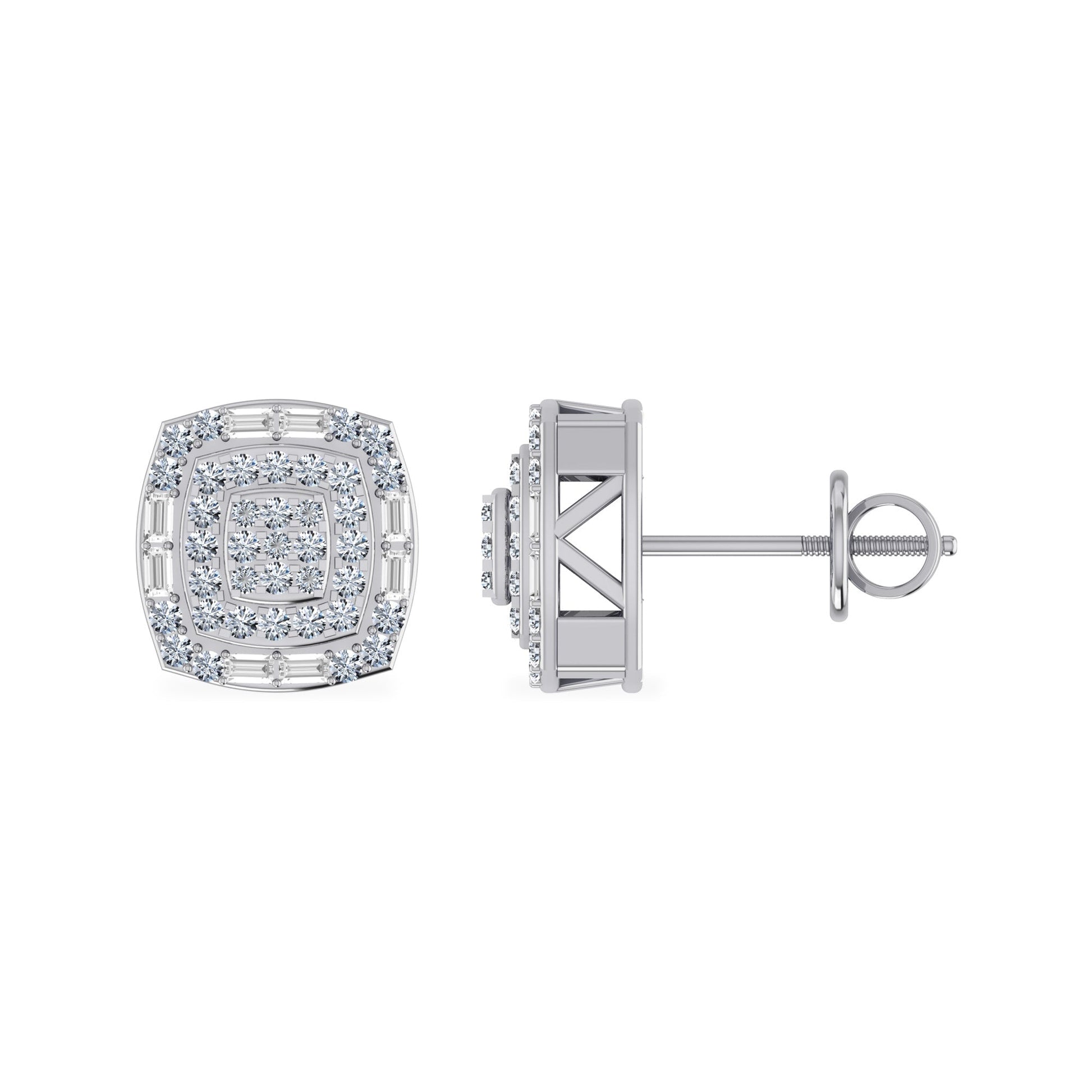 JewelryByBryce Presents: 10K White Gold Round Diamond Square Shape Stud Earrings – 5/8 Ctw