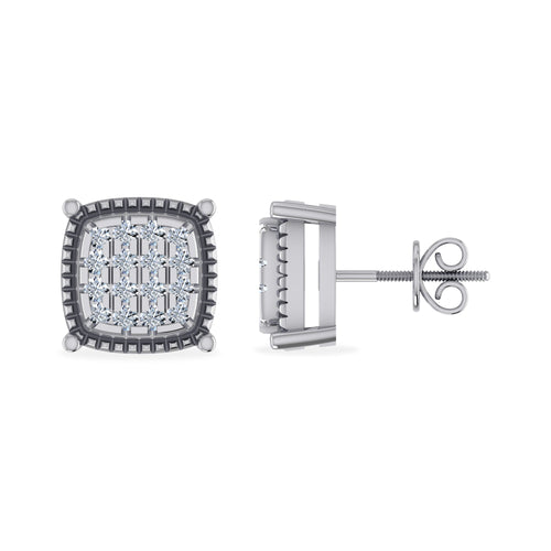 10K White Gold Square Shape Diamond Stud Earrings 1/10 Ctw