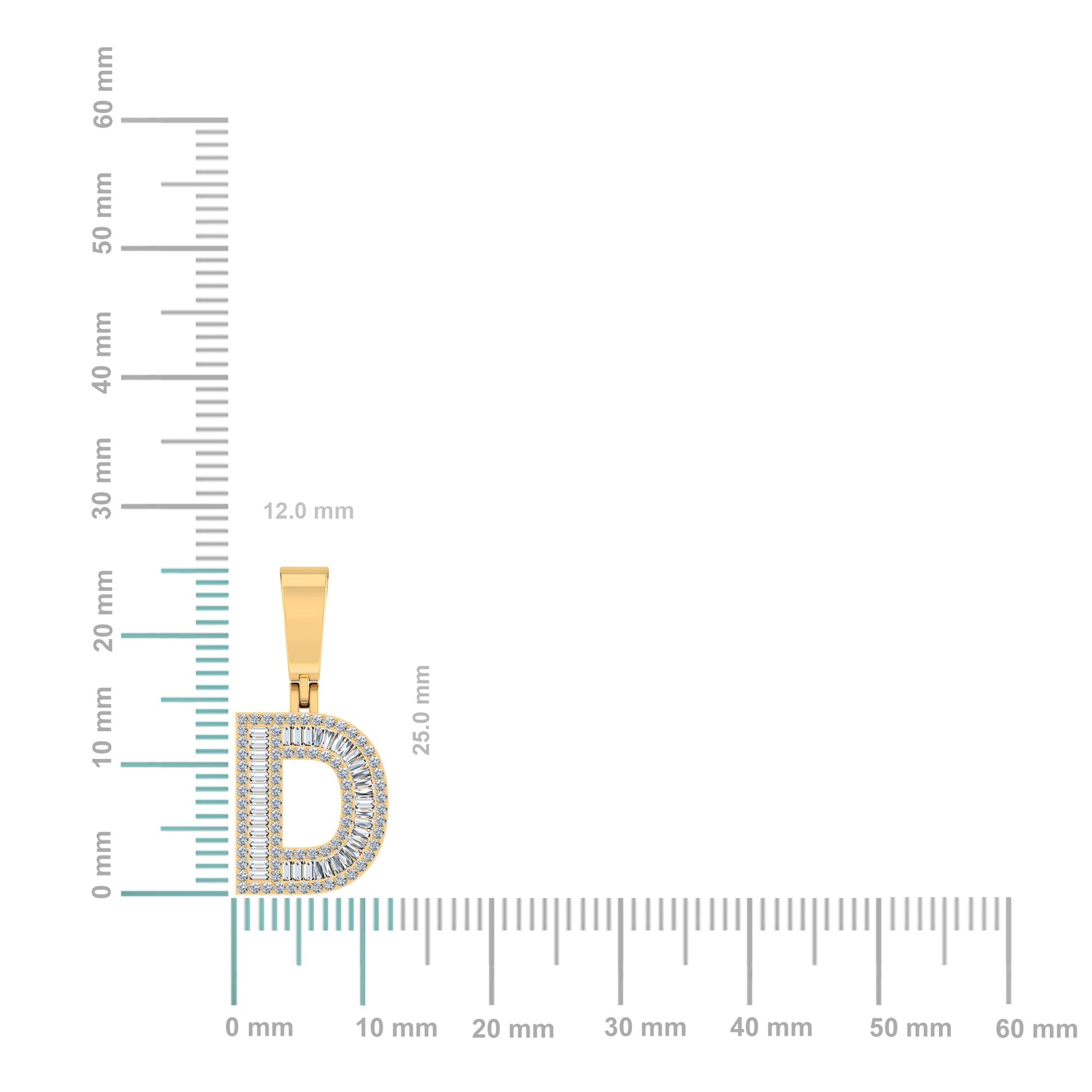 Crafted with precision, this "D" initial pendant in 10K yellow gold is a timeless statement piece. Adorned with 1/2 carat of dazzling baguette diamonds, it offers a sleek and personalized touch to any jewelry collection.