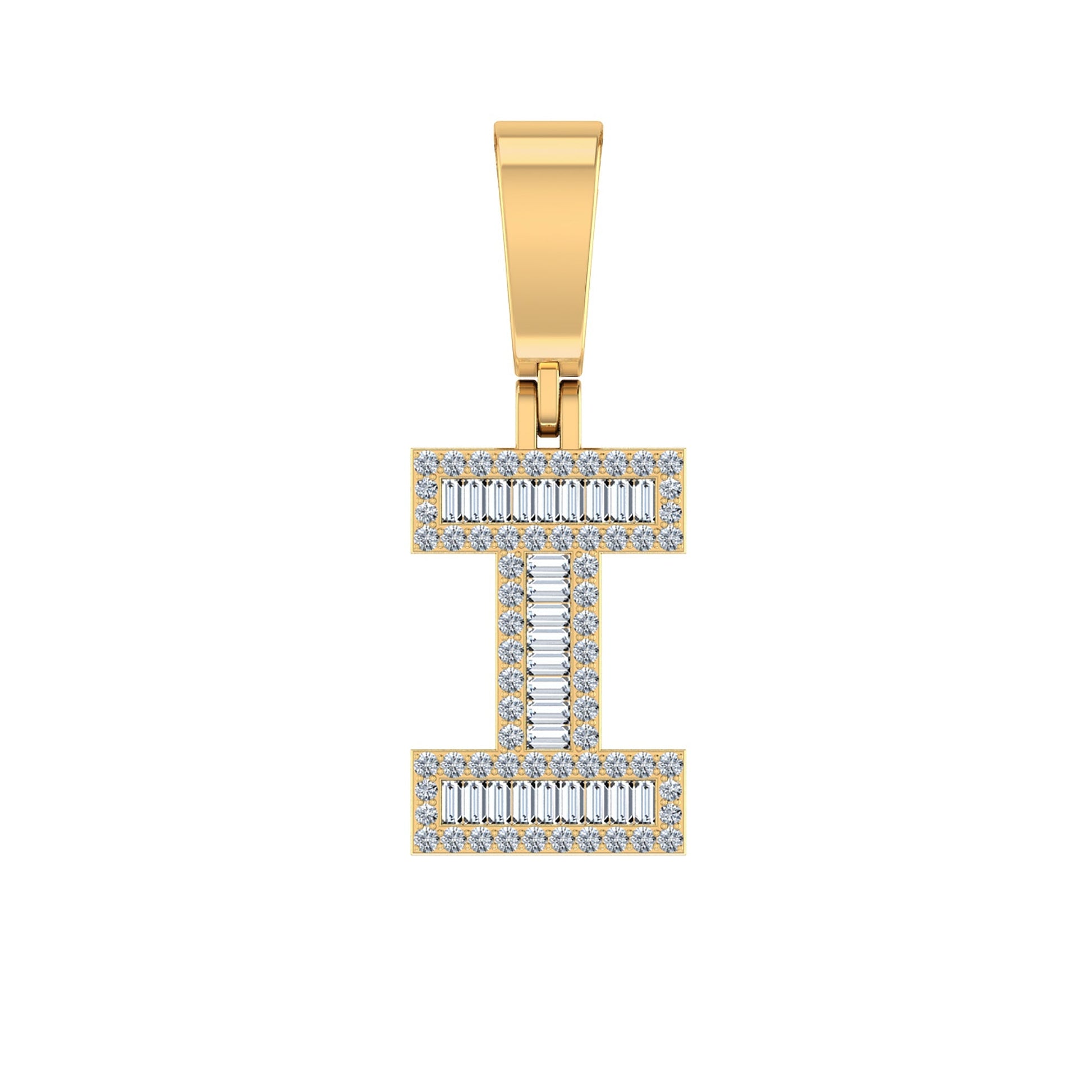 JewelryByBryce Presents: 10K Yellow Gold Baguette Diamond Initial I Letter Pendant – 1/3 Ctw