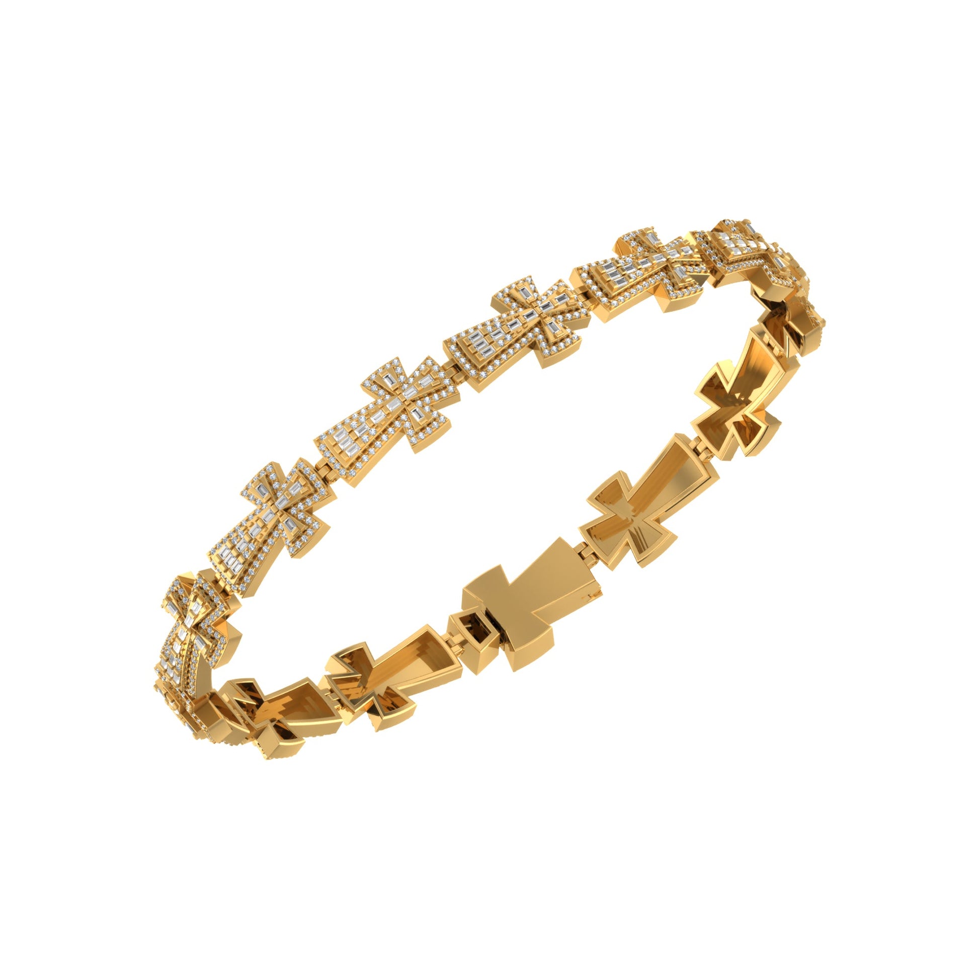 JewelryByBryce Presents: 10K Yellow Gold Round Baguette Diamond Cross Religious Bracelet – 8 Inches, 2-1/2 Ctw