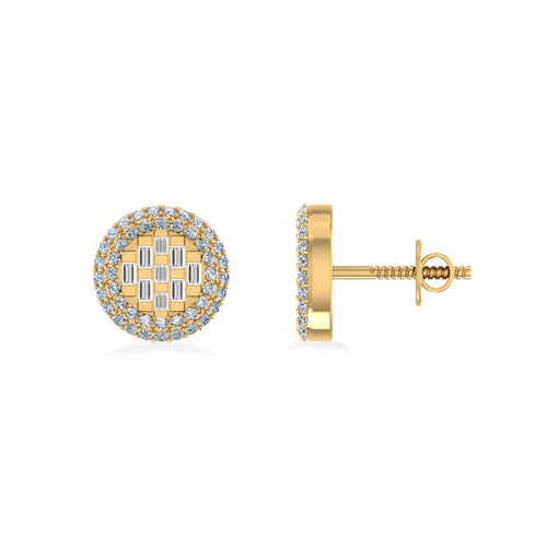 10K Yellow Gold Round Baguette Diamond Halo Designer Earring 3/8 Ctw
