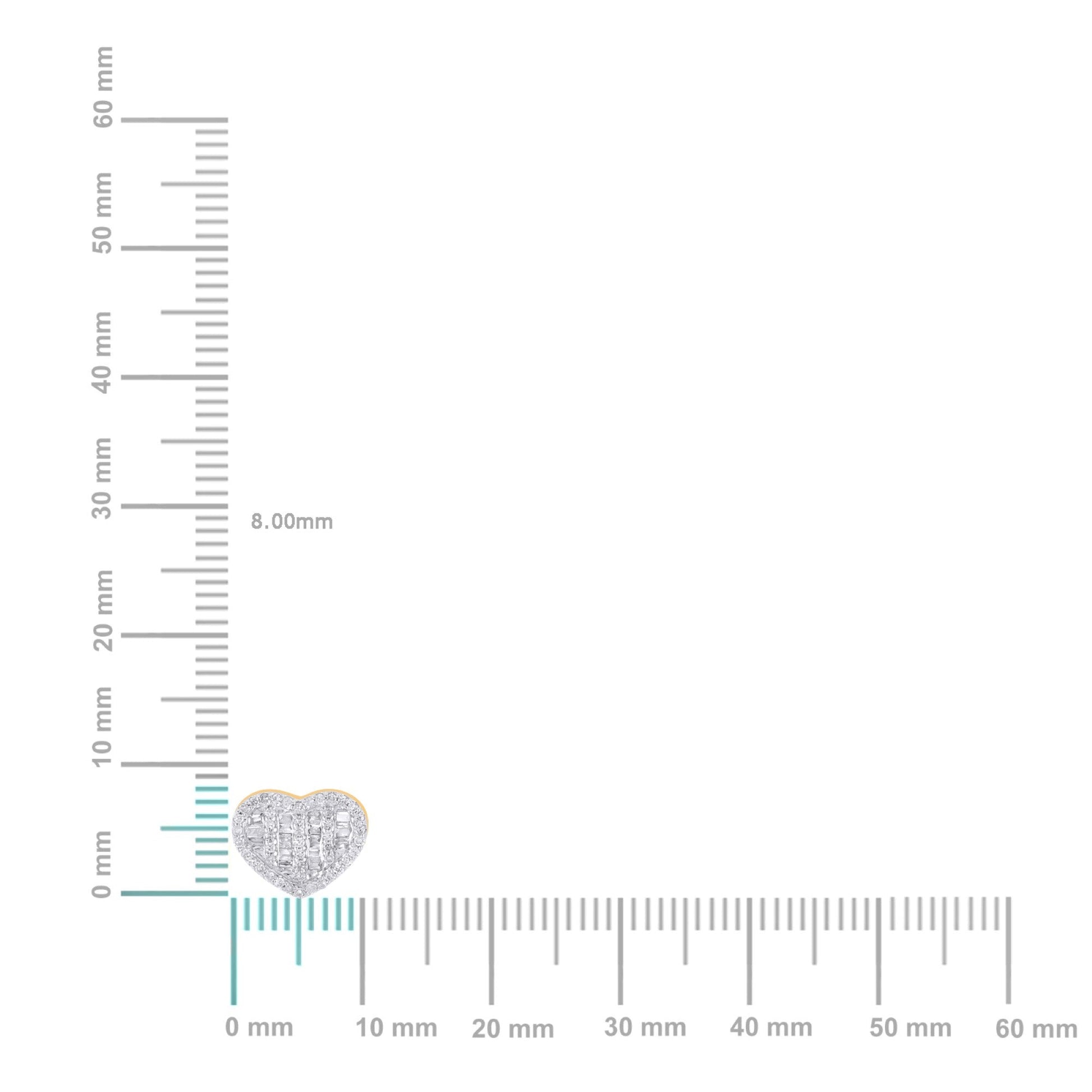 Exude timeless romance and sophistication with the 10K Yellow Gold Round Baguette Diamond Heart Earrings. These stunning earrings feature a heart-shaped design, crafted from radiant 10K yellow gold and adorned with 1/3 carats of round and baguette-cut diamonds. The exquisite round diamonds provide brilliant sparkle, while the elegant baguette diamonds add a touch of modern refinement, creating a perfect harmony of light and design.