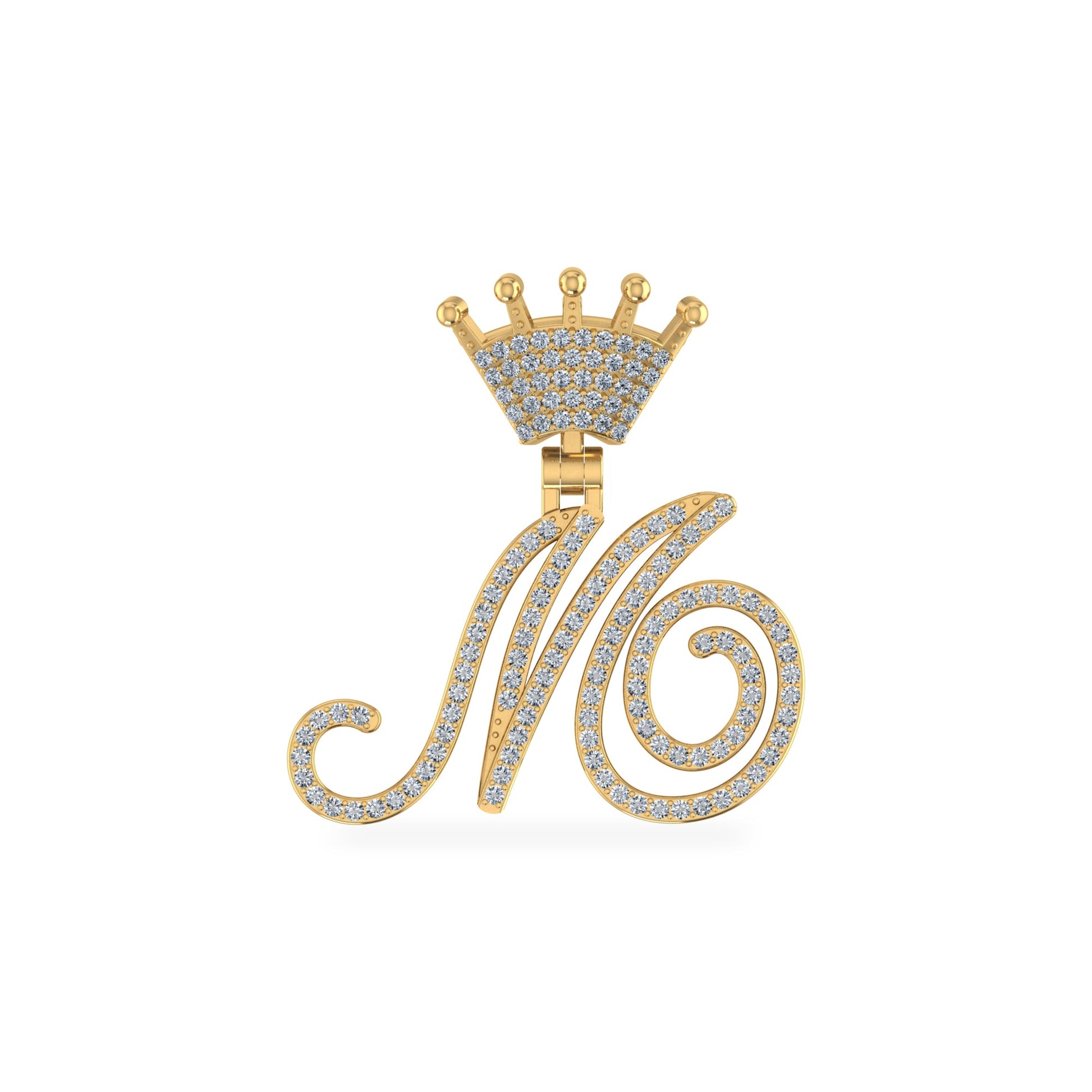10K Yellow Gold Round Diamond Crown M Letter Initial Pendant 1/4 Ctw