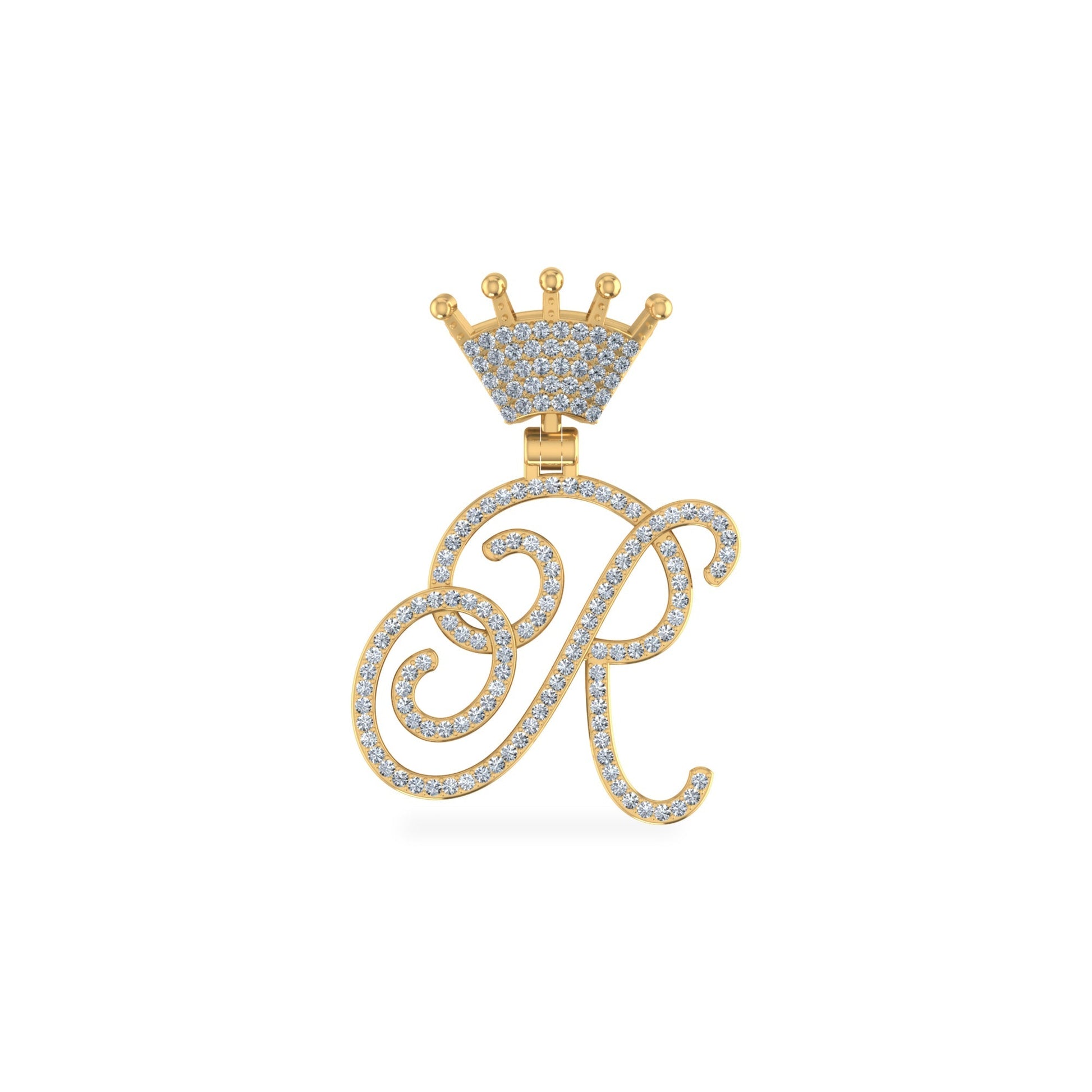 JewelryByBryce Presents: 10K Yellow Gold Round Diamond Crown R Letter Initial Pendant – 1/4 Ctw