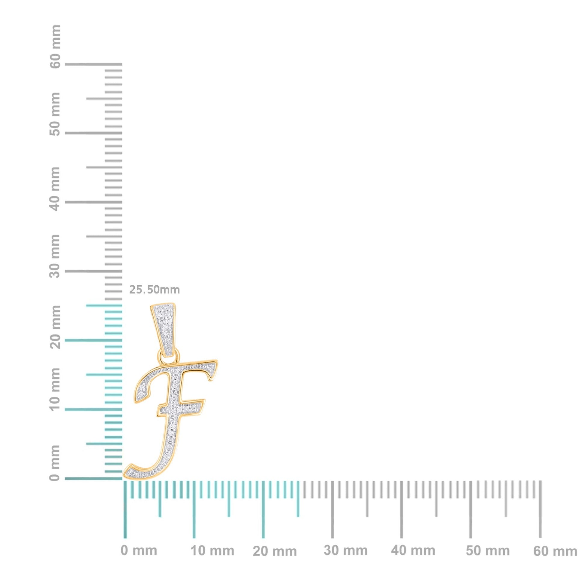 10K Yellow Gold Round Diamond F Letter Initial Pendant 1/10 Ctw