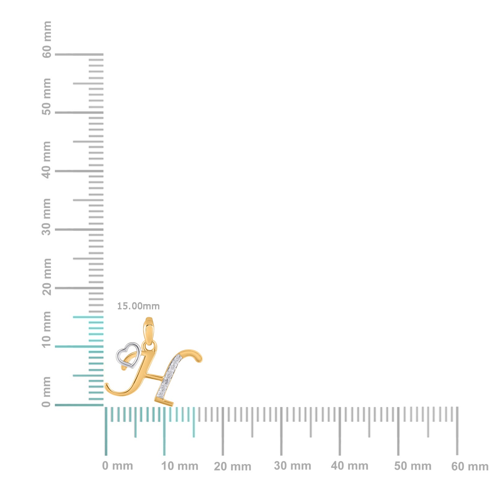 10K Yellow Gold Round Diamond H Letter Initial With Heart Pendant 1/10 Ctw