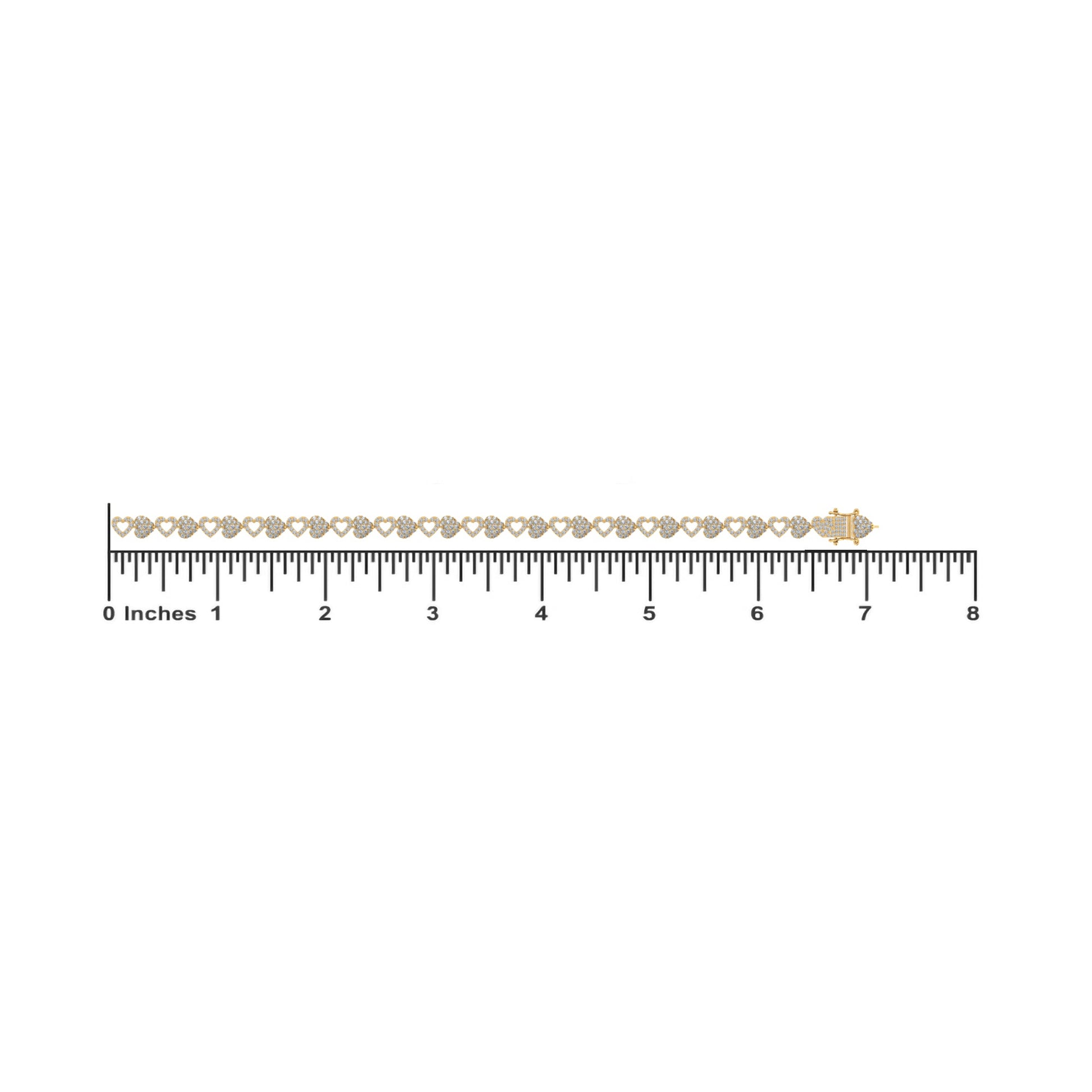 10K Yellow Gold Round Diamond Heart Designer 7 Inch Bracelet 2-1/6 Ctw
