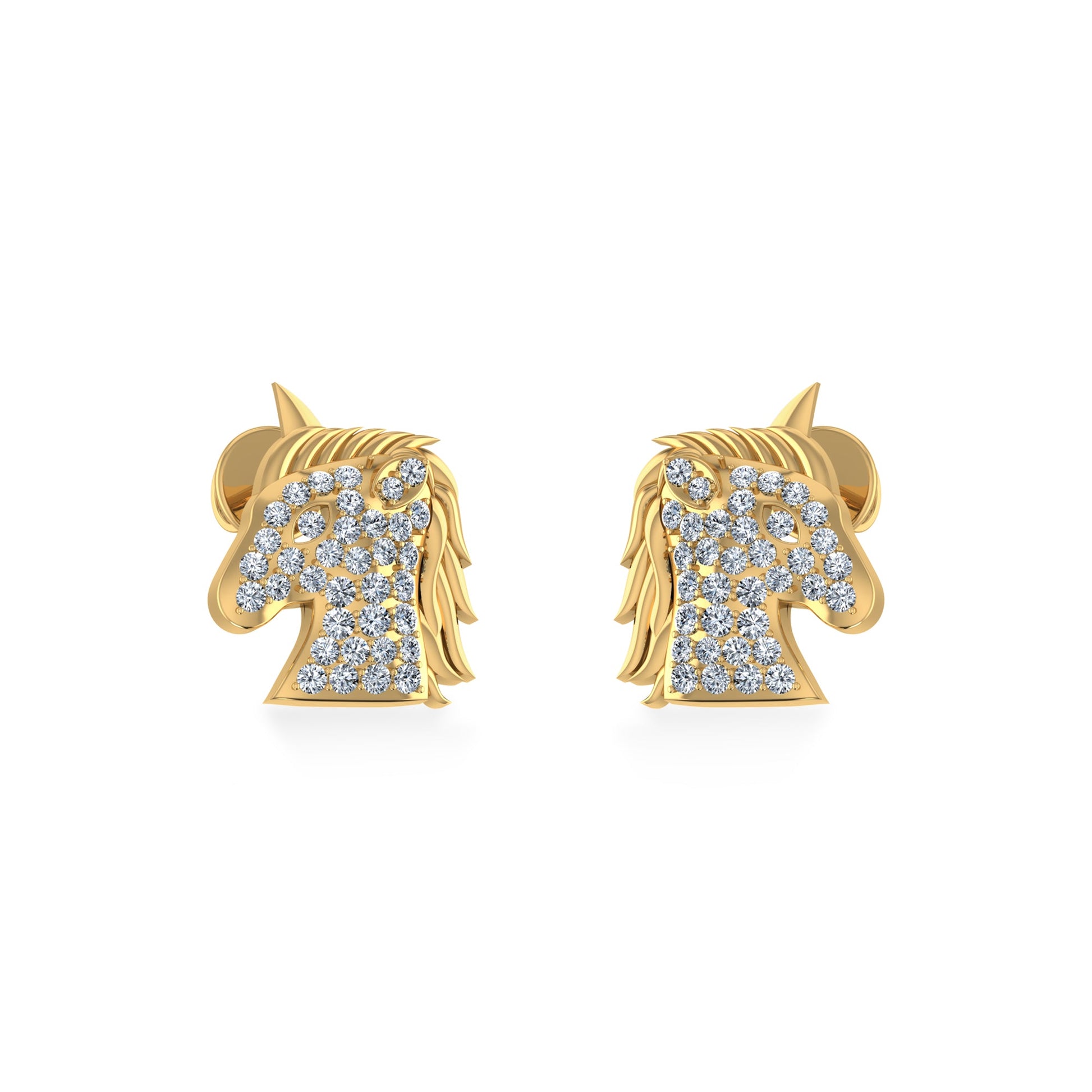 10K Yellow Gold Round Diamond Horse Animal Designer Stud Earring 1/5 Ctw