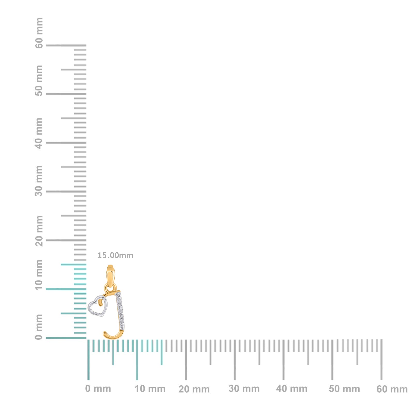 10K Yellow Gold Round Diamond J Letter Initial With Heart Pendant 1/10 Ctw