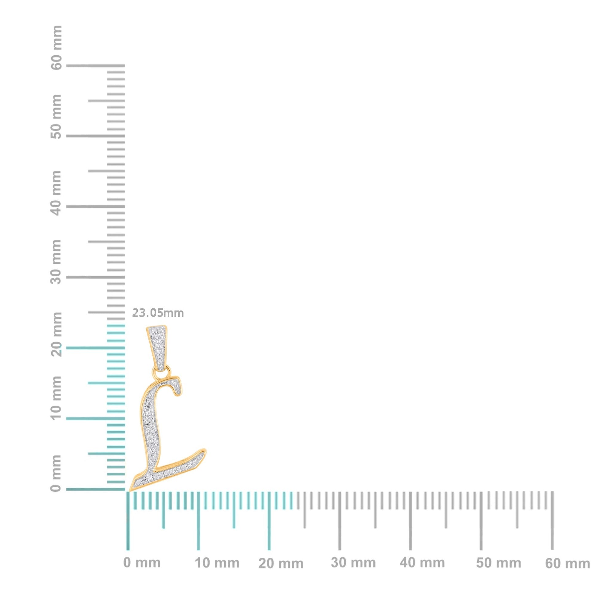 10K Yellow Gold Round Diamond L Letter Initial Pendant 1/10 Ctw