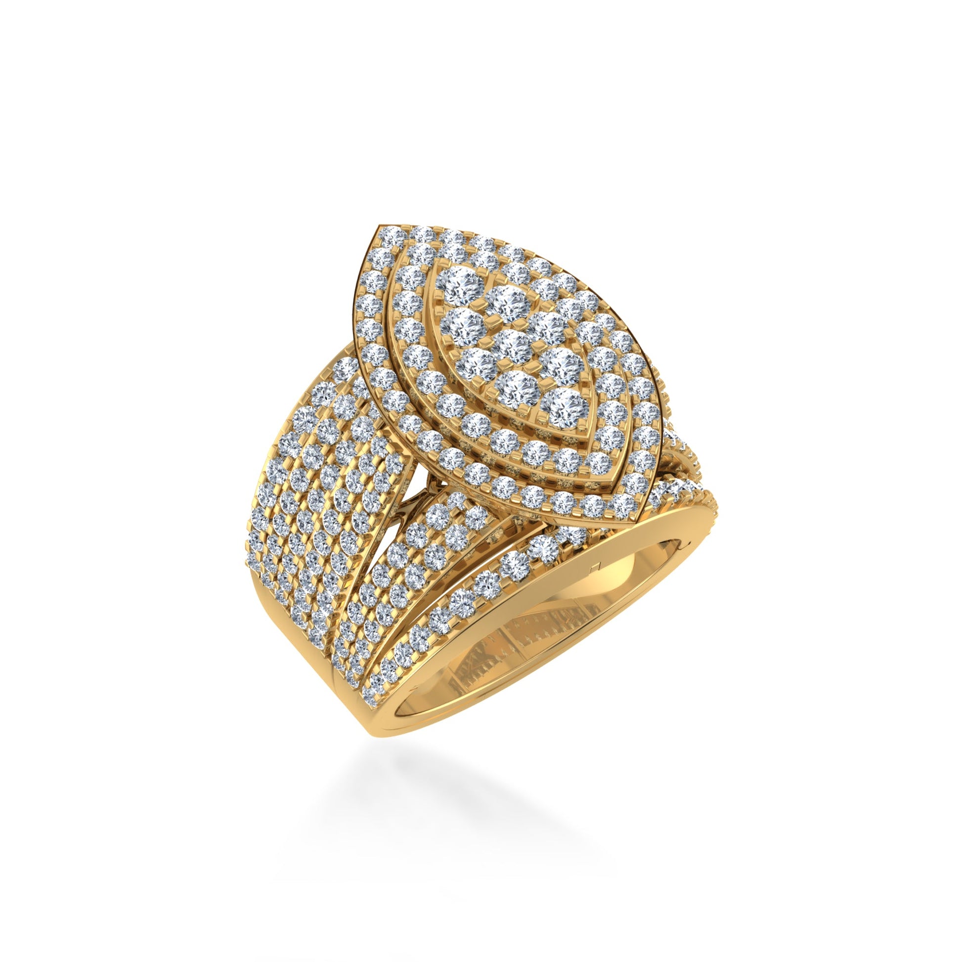 The warm yellow gold beautifully complements the diamonds, creating a timeless contrast that enhances the ring's luxurious appeal. Whether for an engagement, anniversary, or a sophisticated addition to your jewelry collection, this ring is sure to captivate.