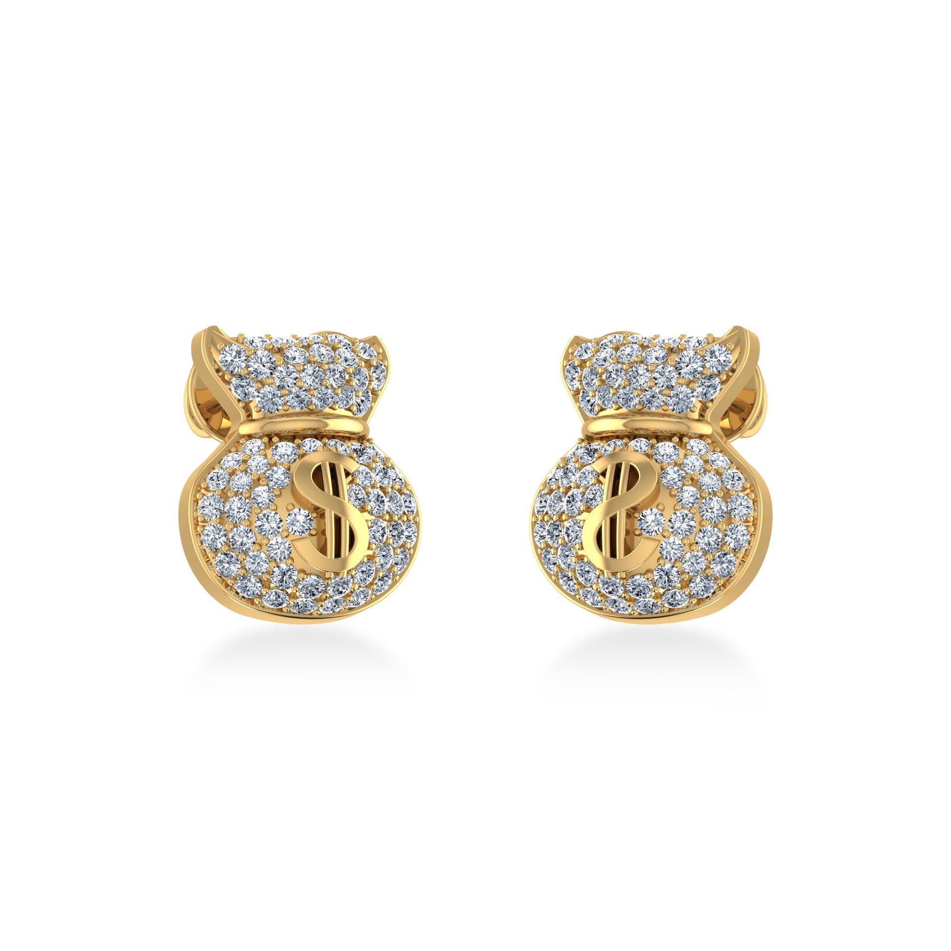 10K Yellow Gold Round Diamond Money Dollar Bag Designer Stud Earrings 1/6 Ctw