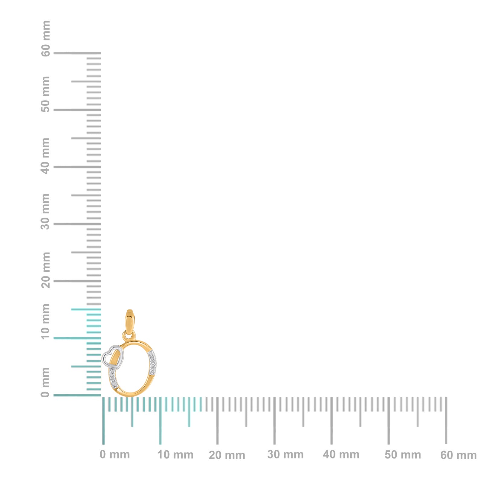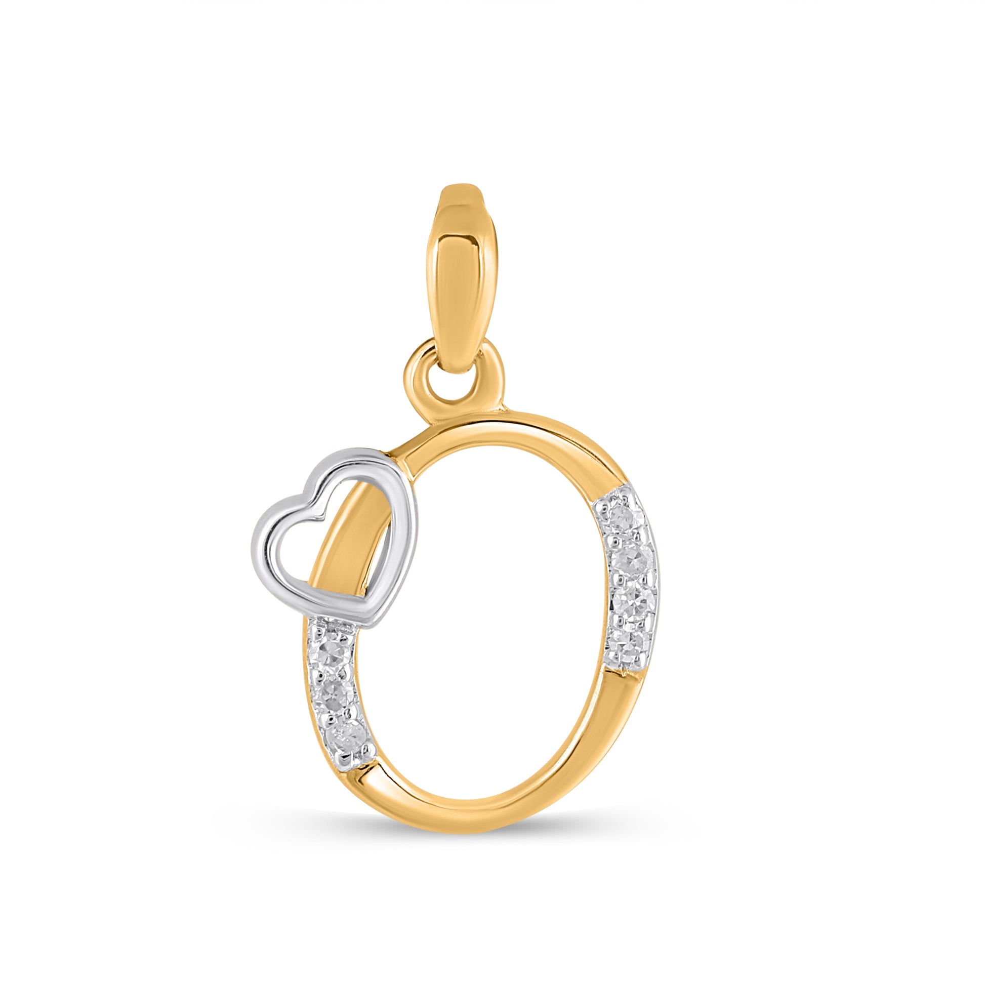 10K Yellow Gold Round Diamond O Letter Initial With Heart Pendant 1/10 Ctw