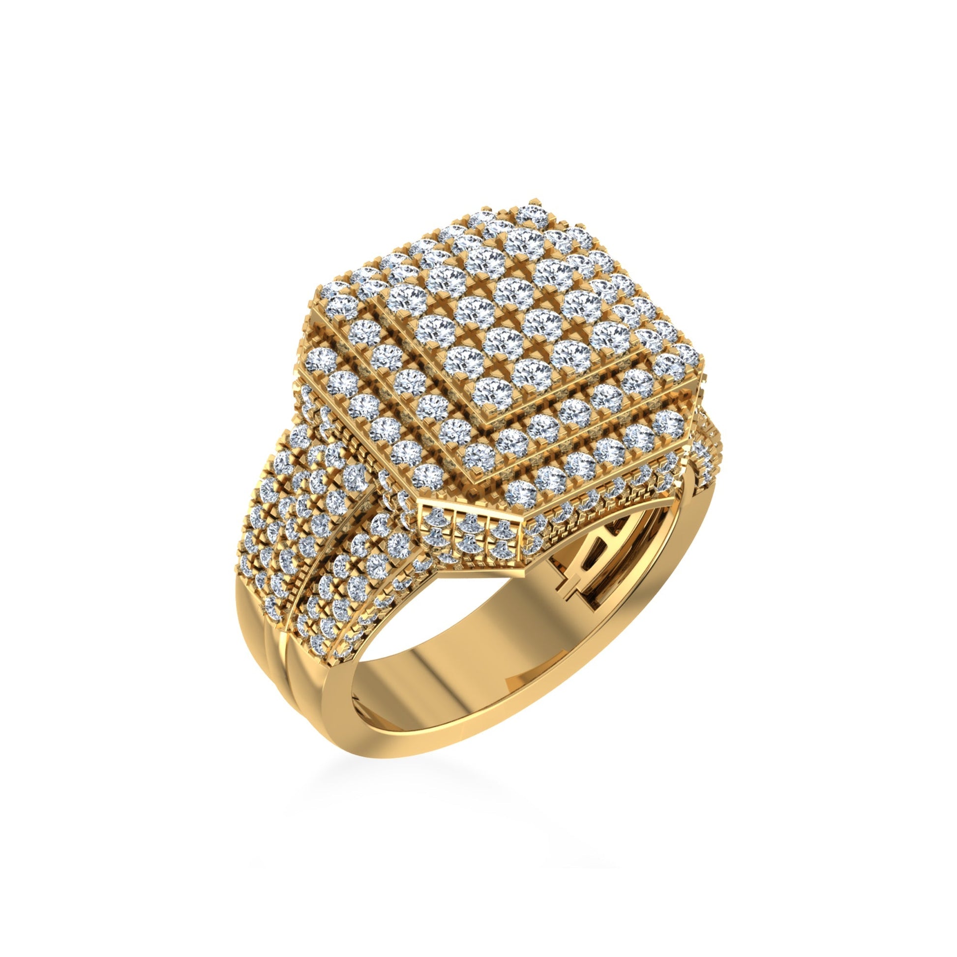 JewelryByBryce: 10K Yellow Gold Round Diamond Square Shape Designer Men’s Ring – 3-3/8 Ctw