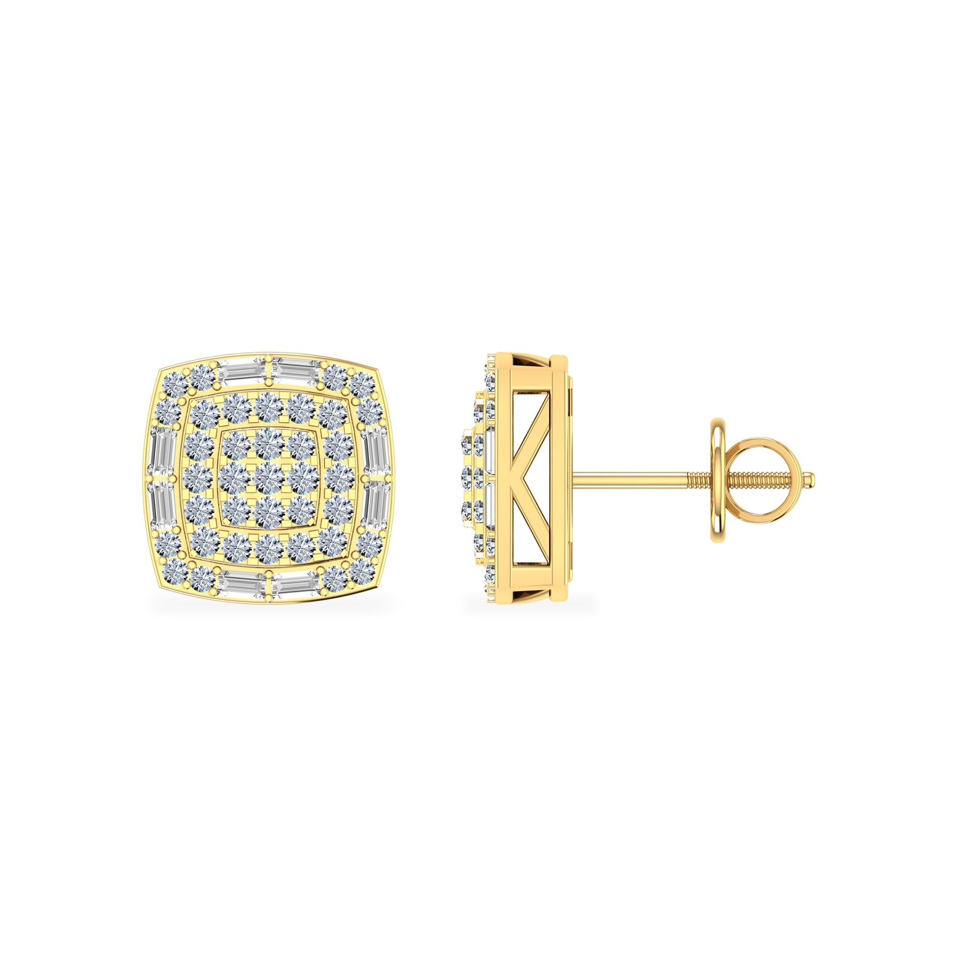 JewelryByBryce Presents: 10K Yellow Gold Round Diamond Square Shape Stud Earrings – 1/2 Ctw