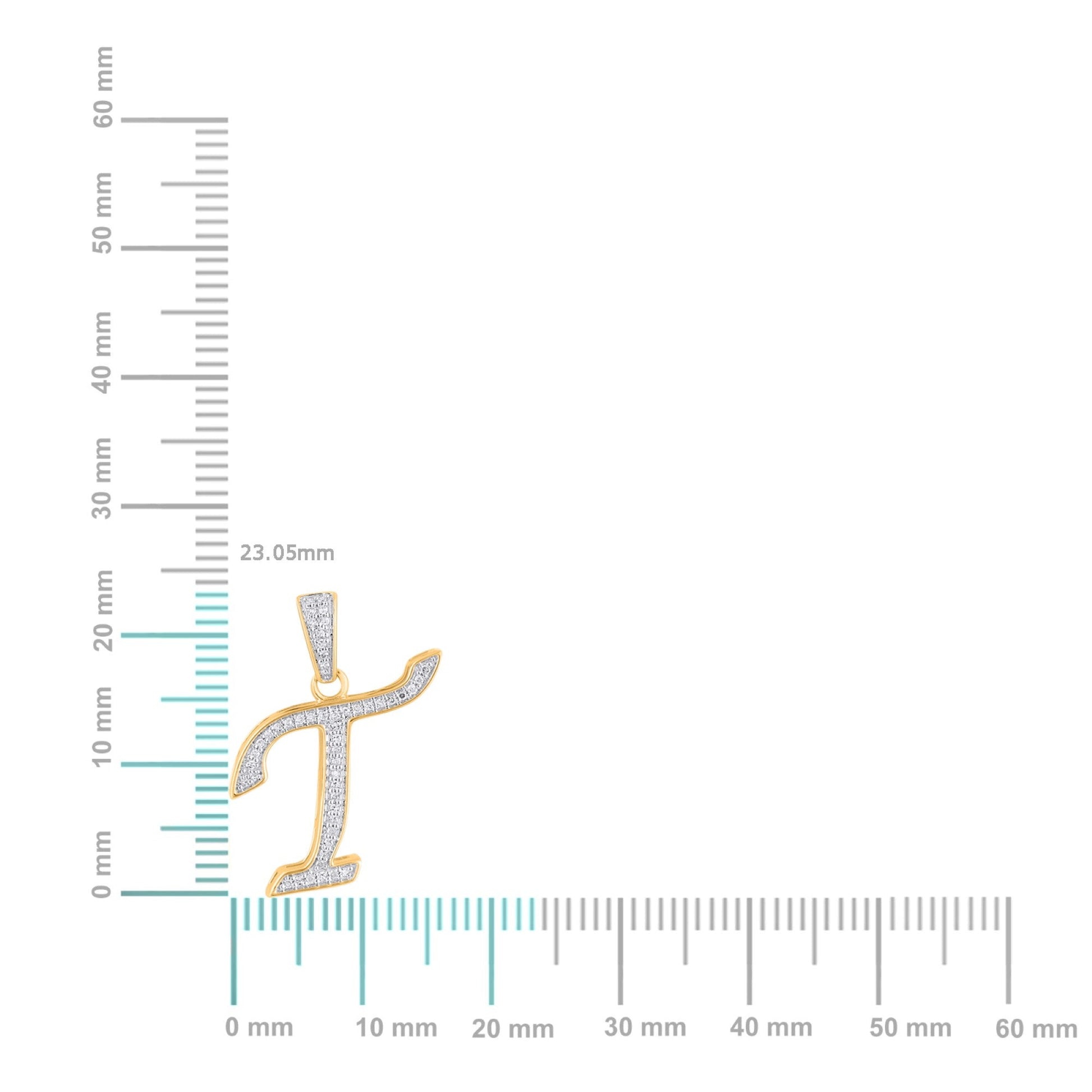 10K Yellow Gold Round Diamond T Letter Initial Pendant 1/10 Ctw